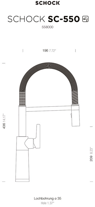 Kuhinjska aramtura se lahko montira na pomivalno korito ali direktno na pult debeline do 5cm. Izredno masivna kuhinjska armatura je na voljo v CRISTADUR® in CRISTALITE® PLUS barvah. Moderna oblika armature se prilegaja širokemu spektru SCHOCK pomivalnih korit drznih oblik. Armatura z povišanim izlivom.