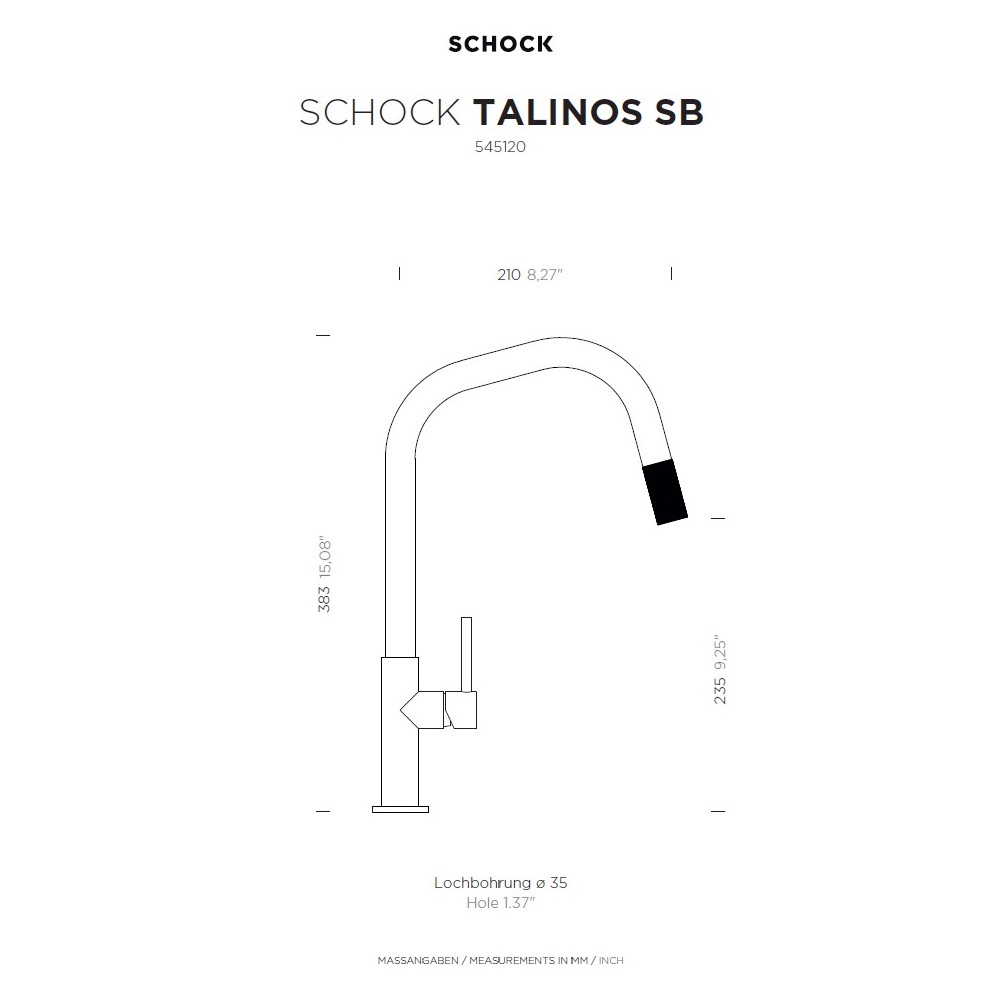 Kuhinjska armatura SCHOCK Talinos 545120 je najnovejša armatura v Schockovi ponudbi z najnovejšim patentiranim sistemom nameščanja, s pomočjo katerega boste vašo armaturo lahko namestili v manj kot minuti.
