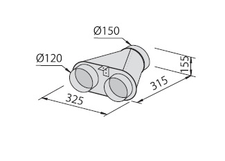 Za priključitev dveh okroglih zračnih kanalov fi120 mm na okrogli zračni kanal fi150 mm
