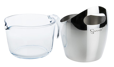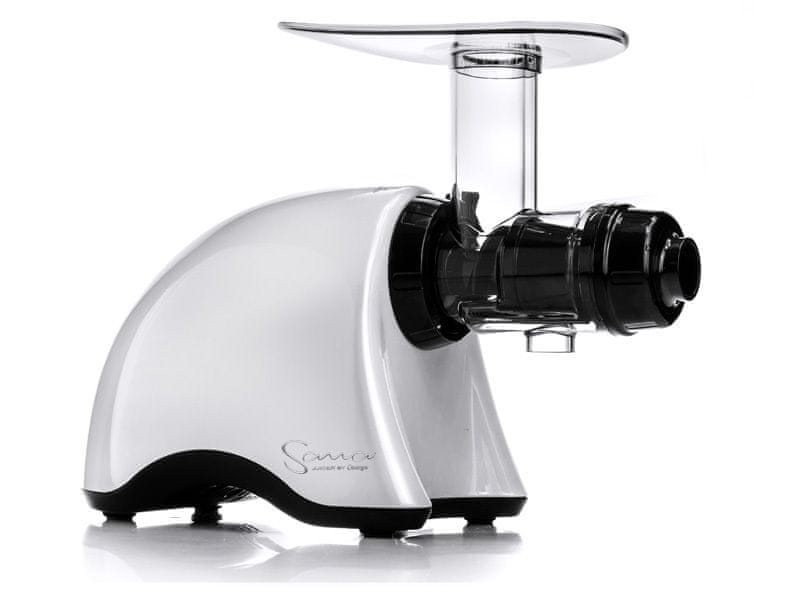 • Nastavek za sočenje z majhnimi luknjicami za pripravo bistrega soka, nastavek za sočenje z velikimi luknjicami za pripravo gostega soka in sočenje mehkega sadja, nastavek za mletje za obdelavo živil, steklena posoda za zbiranje soka s pritrdljivim cedilom, posoda za pulpo iz nerjavečega jekla, 4 šobe za izdelavo testenin in sorbetov, potiskač s silikonskim obročem, navodila v slovenščini