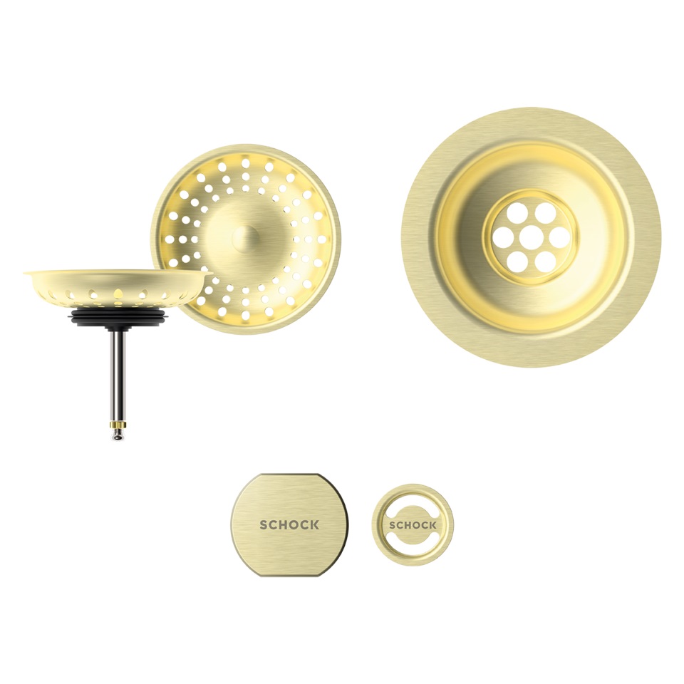 Vsako korito SCHOCK iz linije Cristadur® lahko opremite s setom izliv, preliv in gumb v petih barvah: srebrni (EDM), belo-zlati (White Gold), bakreni (Copper), temno sivi (Gunmetal) ter črni (Puro).