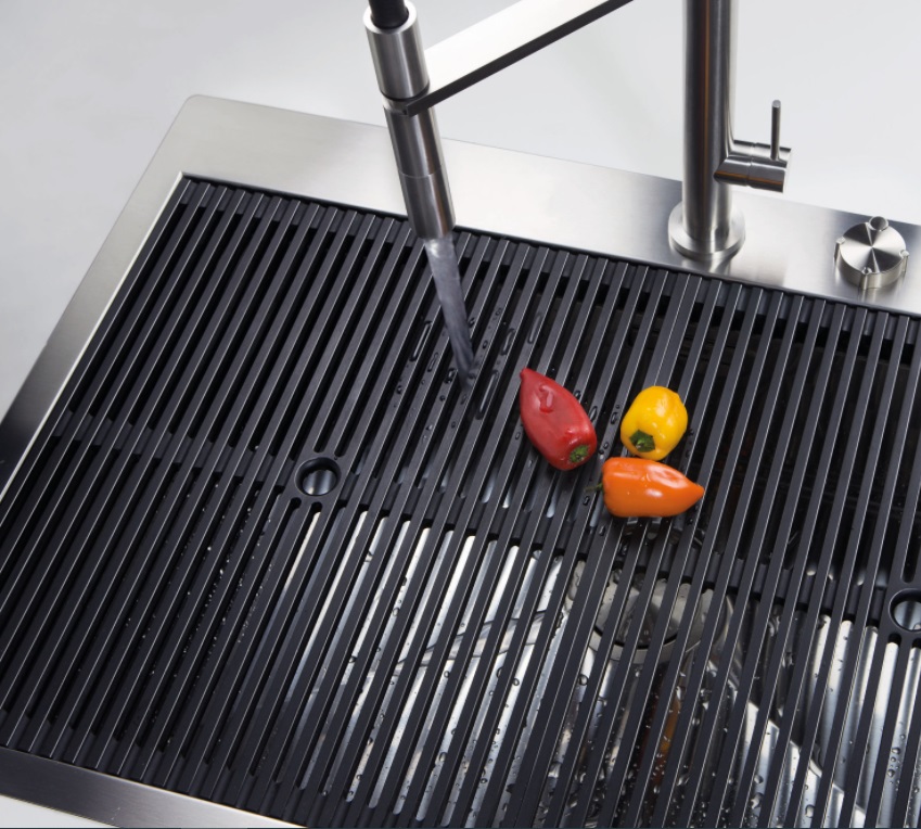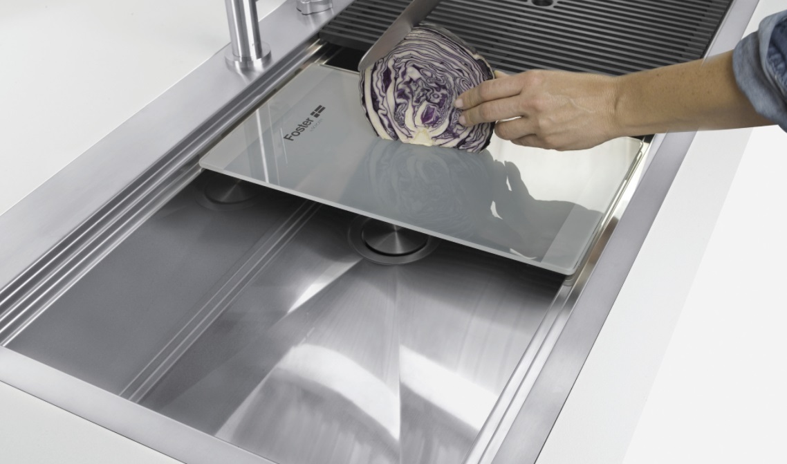 Pomivalno korito FOSTER Milano, inovativni koncept funkcionalnosti. Genialna oblika pomivalnega korita s povečano globino kar 56 cm, omogoča uporabo velikega nabora dodatne opreme. Korito ima stopničast rob posode, na katerega lahko namestite več različnih dodatkov za praktično in ergonomsko uporabo.