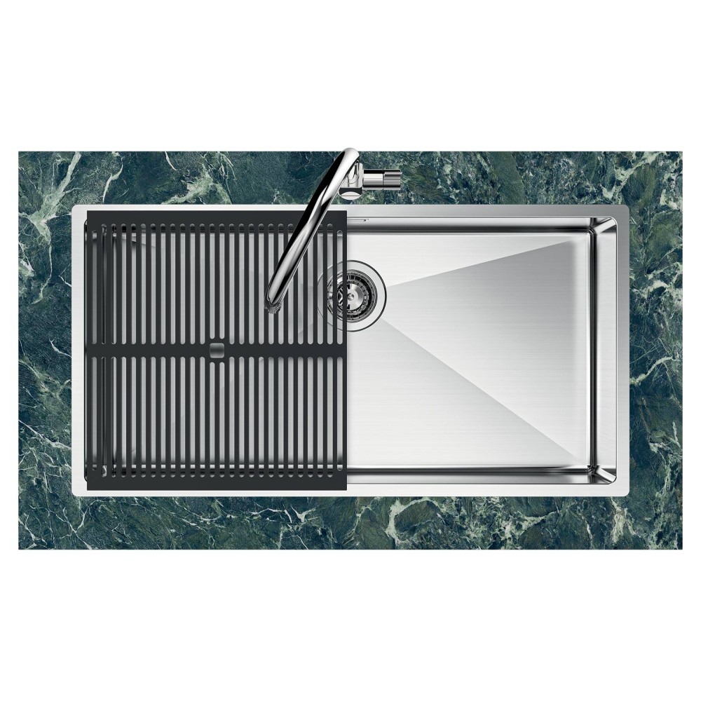 Pomivalno korito Quadra R12 1715 056 je v barvi Gun Metal eleganten in trpežen dodatek vaši kuhinji. S PVD zaključkom ta umivalnik izžareva edinstveno barvo Gun Metal, ki vašemu prostoru doda pridih prefinjenosti. Izdelan je iz nerjavečega jekla AISI 304 z brušeno teksturo Foster in nudi tako estetsko privlačnost kot praktičnost. Jeklena konstrukcija debeline 1 mm zagotavlja maksimalno trdnost in vzdržljivost. To pomivalno korito z eno samo posodo z dimenzijami 540x440 mm zagotavlja dovolj prostora za vaša kuhinjska opravila. Korito je opremljeno s praktično mrežo, ki služi kot površina za odcejanje pomite posode.