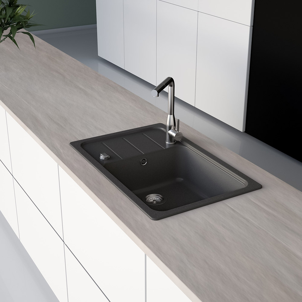 V tej črni barvi Nero se bo kuhinjsko korito lepo umestilo v vsako kuhinjo, saj mu lahko dodate še druge dodatke kot so praktična kotna posodica, rezalna deska iz lesa ali umetnih vlaken, LED luči ter dekorativni pokrov izliva. Zraven pa lahko vedno dobite tudi vse čistilne pripomočke za enostavno vzdrževanje.