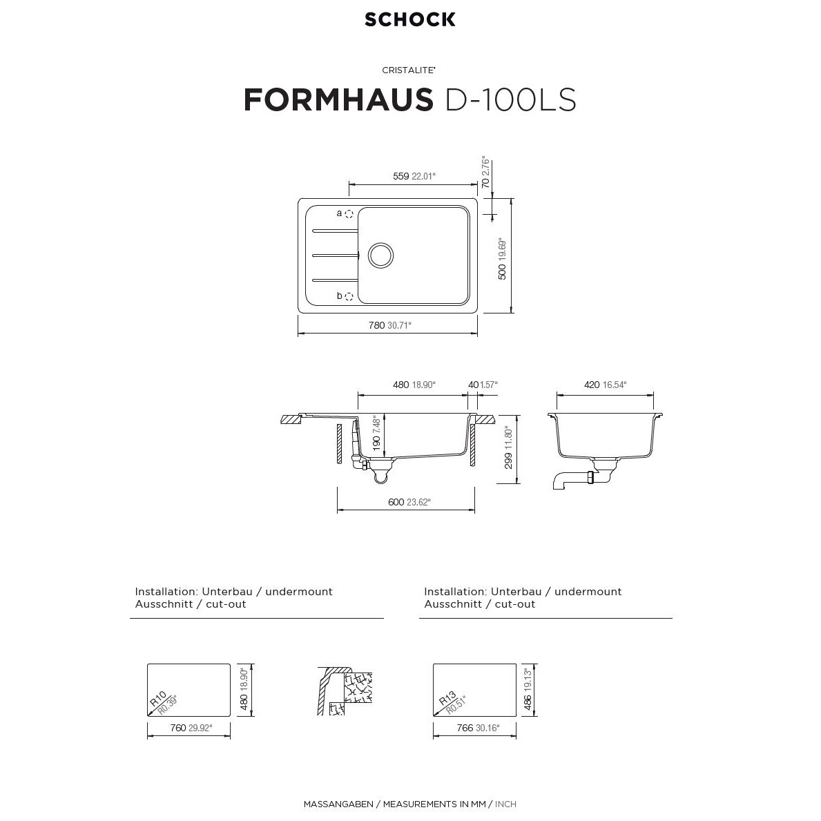 Pomivalno korito SCHOCK Formhaus D-100LS je preprosto kamnito korito za vse tiste, ki si želijo veliko posodo ter manjši odcejalnik. Korito elegantno dopolnita kuhinjski armaturi SCHOCK Laios ali SC-90, ki ju lahko dobite v mnogih barvah. Za še večji »wow« efekt pa korito lahko izpopolnite tudi z LED lučmi.