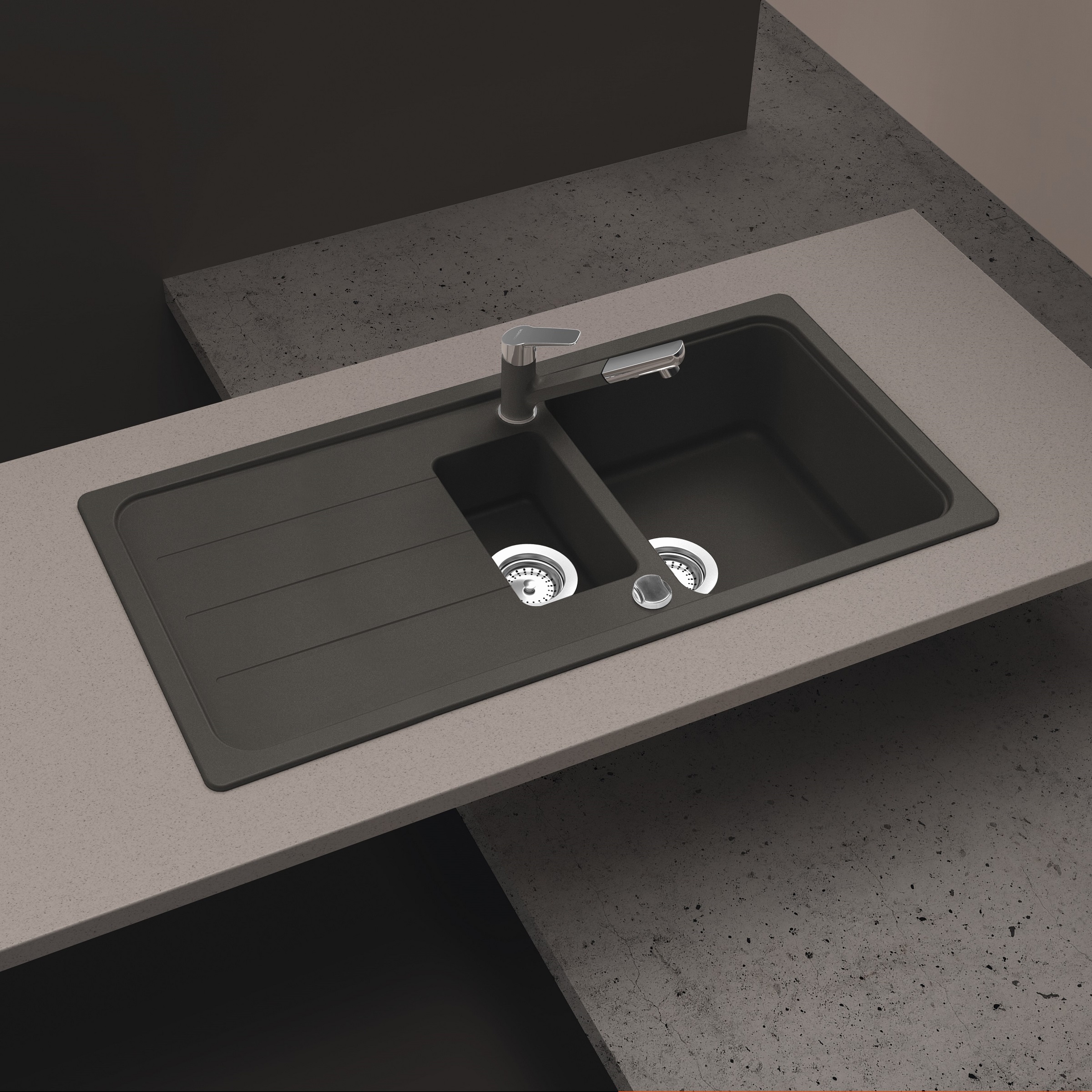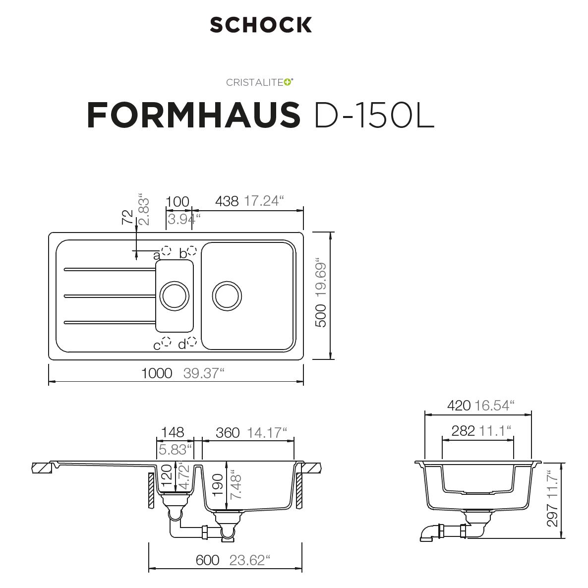 Pomivalno korito SCHOCK Formhaus D-150L je veliko klasično korito z eno večjo in eno manjšo posodo. Dobavljivo v tej črni barvi Onyx, prav tako pa še v treh drugih barvah linije Cristalite®. Koritu se najbolje poda kuhinjska armatura SCHOCK Cosmo, ki jo prav tako lahko dobite v barvah linije Cristalite®.