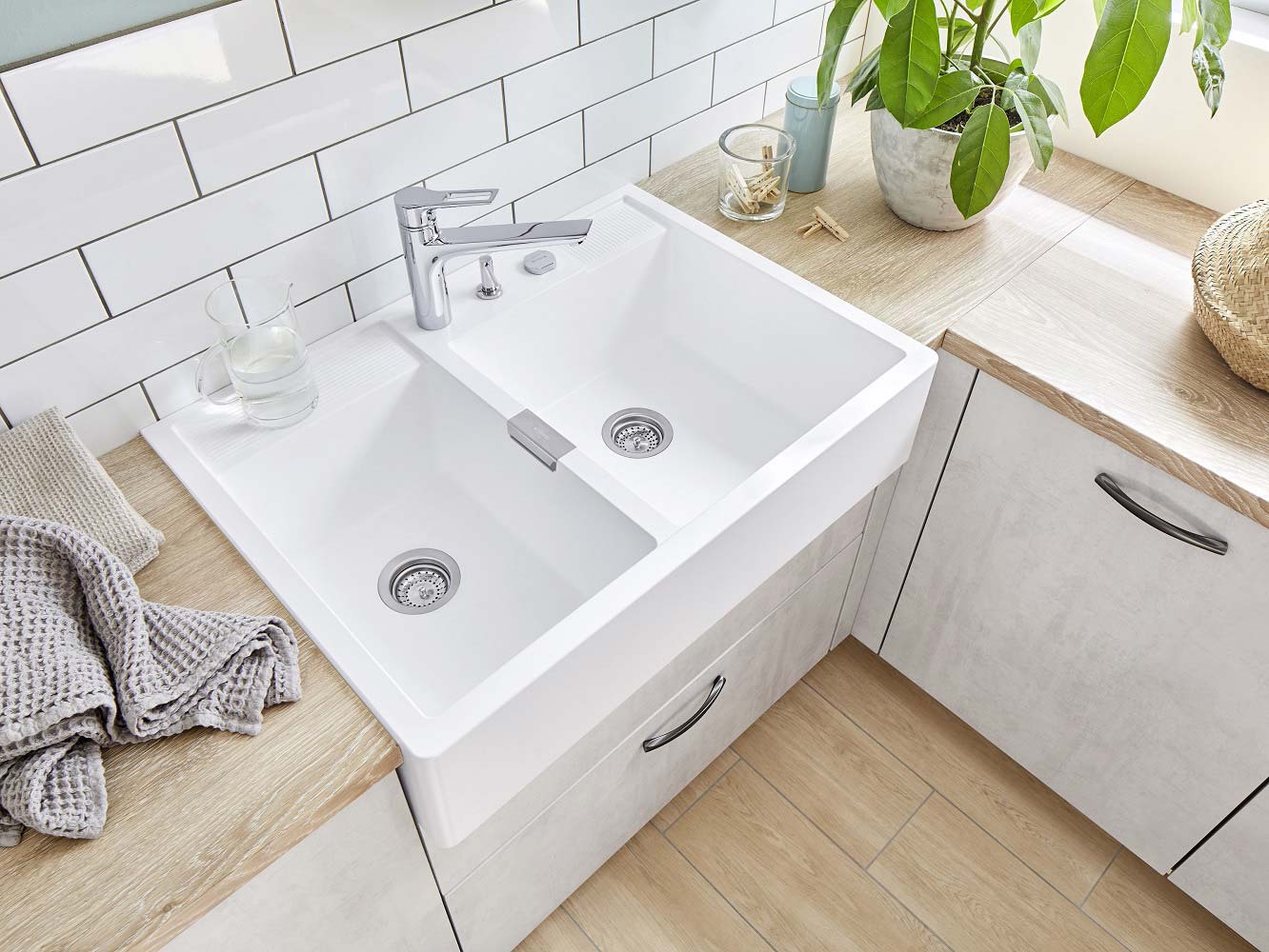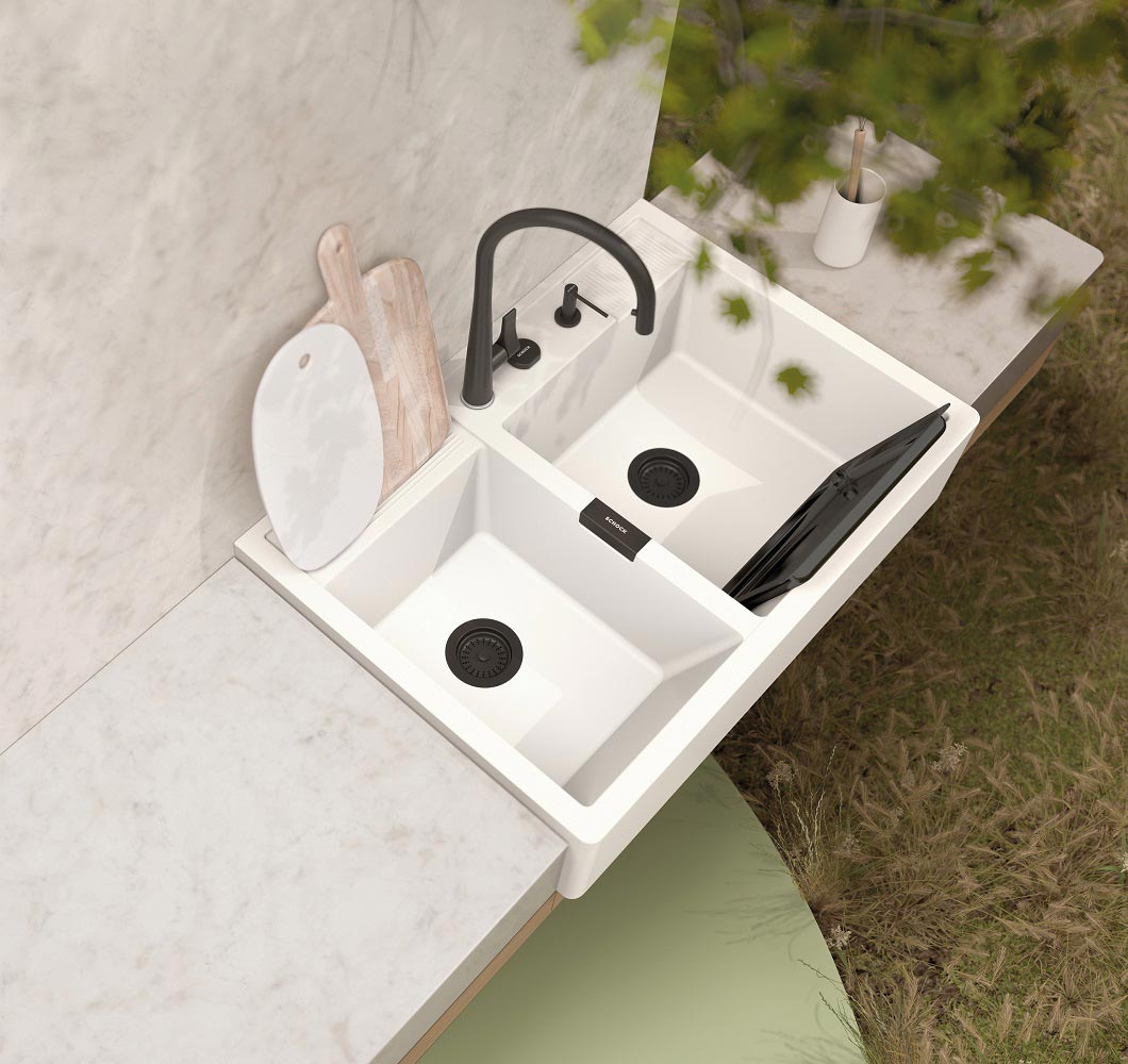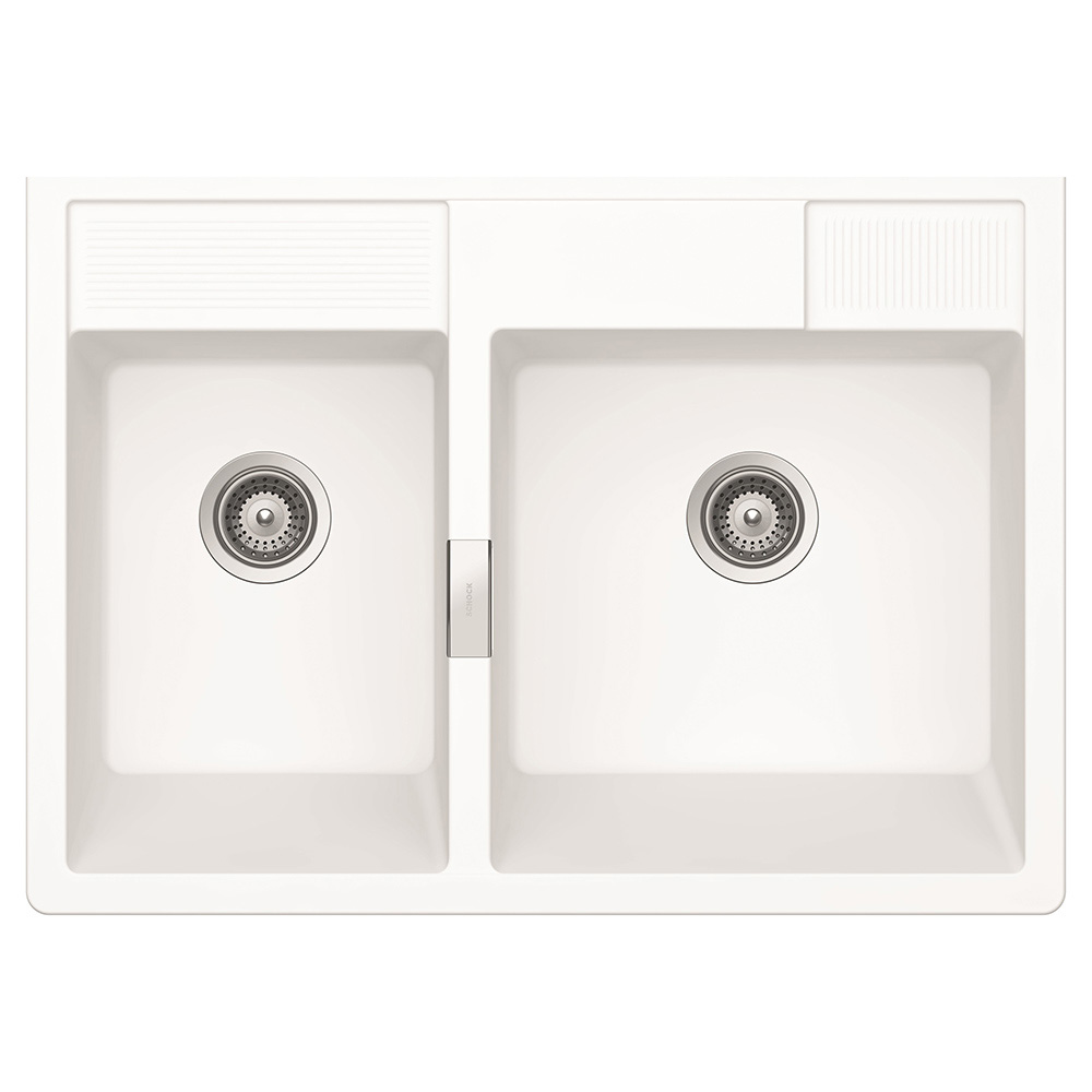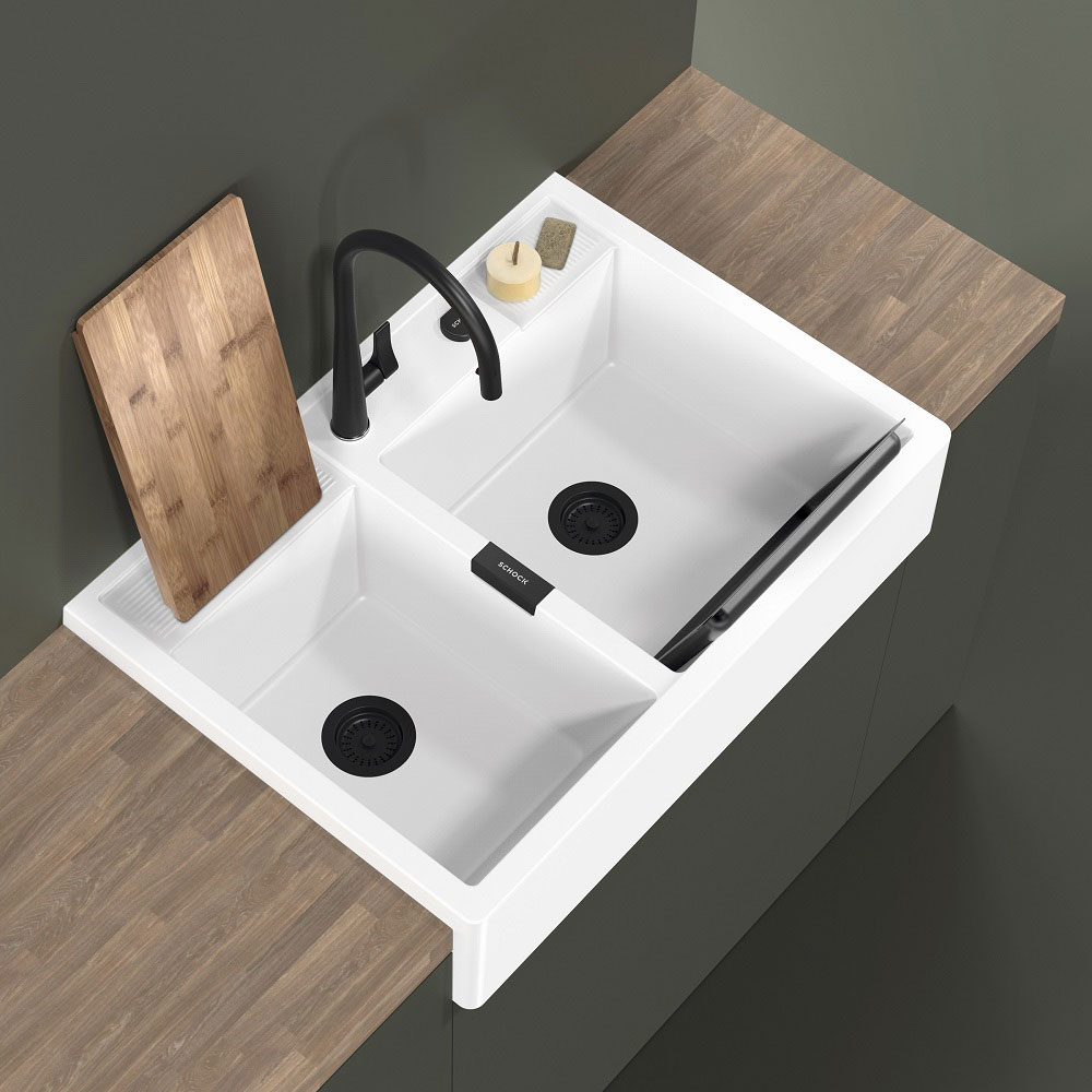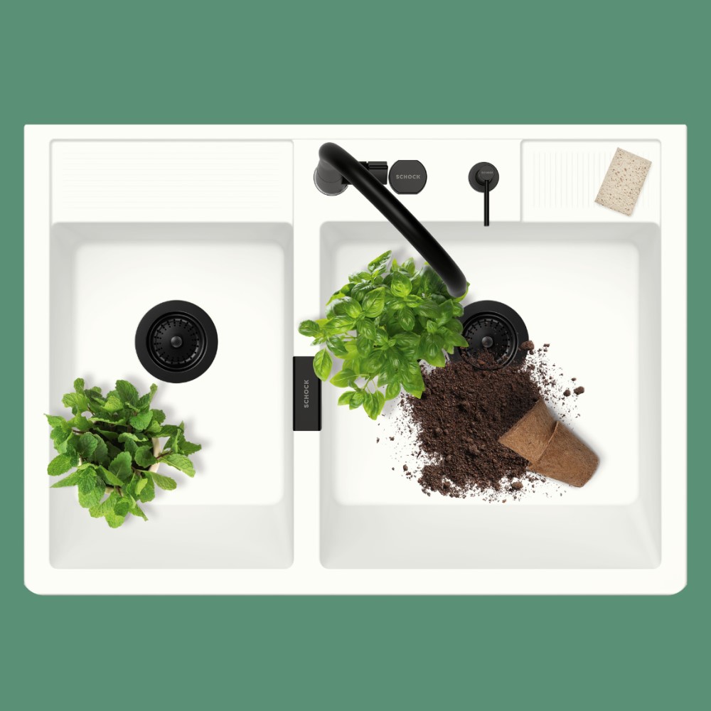Pomivalno korito SCHOCK Kallio M-175 je mogočno in trpežno pomivalno korito, na voljo je v tej beli barvi Day, dobavljivo pa je še v treh drugih barvah CRISTADUR® GreenLine. Je nasadno pomivalno korito, kar pomeni, da se vgradi kot zgornji element kuhinjske omarice namesto pulta. Korito se zelo domače počuti v rustikalnih in domačih kuhinjah in zelo lepo se mu poda kuhinjska armatura SCHOCK Resi.