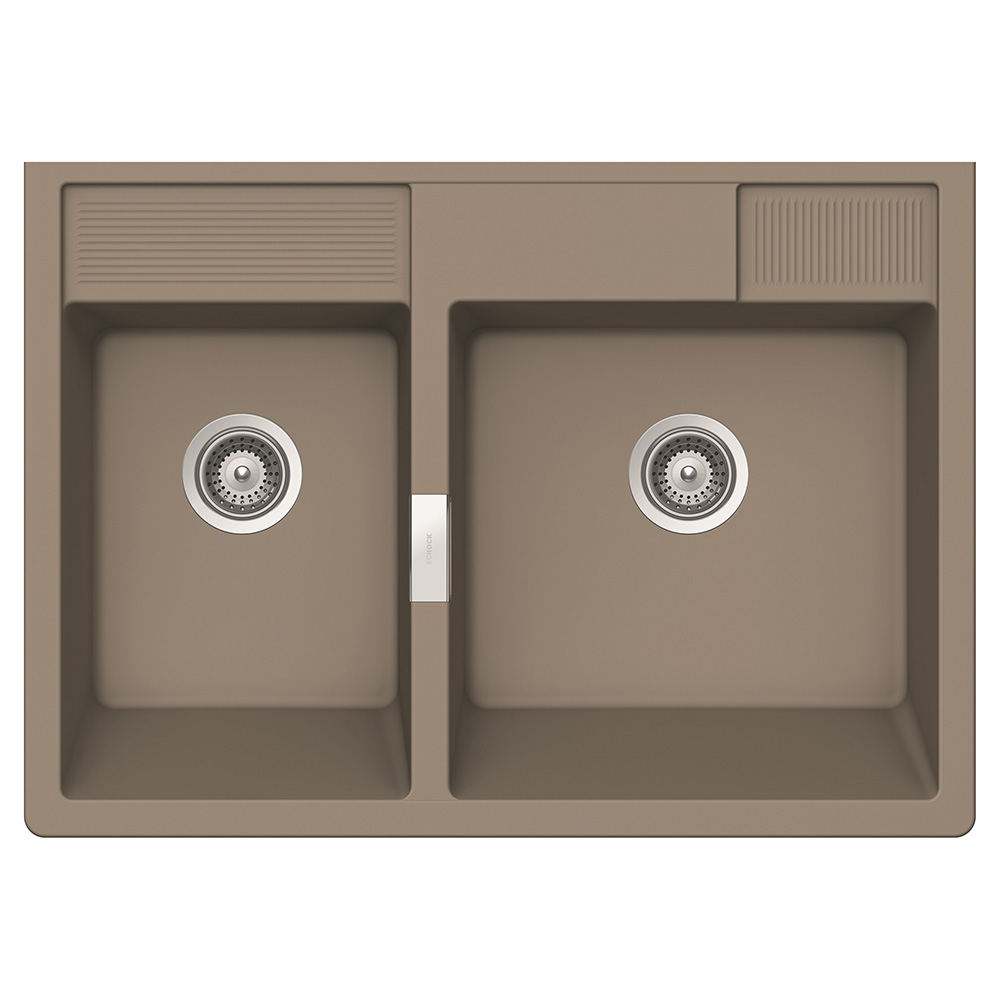 Pomivalno korito SCHOCK Kallio M-175 je mogočno in trpežno pomivalno korito, na voljo je v tej taupe barvi Twilight, dobavljivo pa je še v treh drugih barvah CRISTADUR® GreenLine. Je nasadno pomivalno korito, kar pomeni, da se vgradi kot zgornji element kuhinjske omarice namesto pulta. Korito se zelo domače počuti v rustikalnih in domačih kuhinjah in zelo lepo se mu poda kuhinjska armatura SCHOCK Resi.