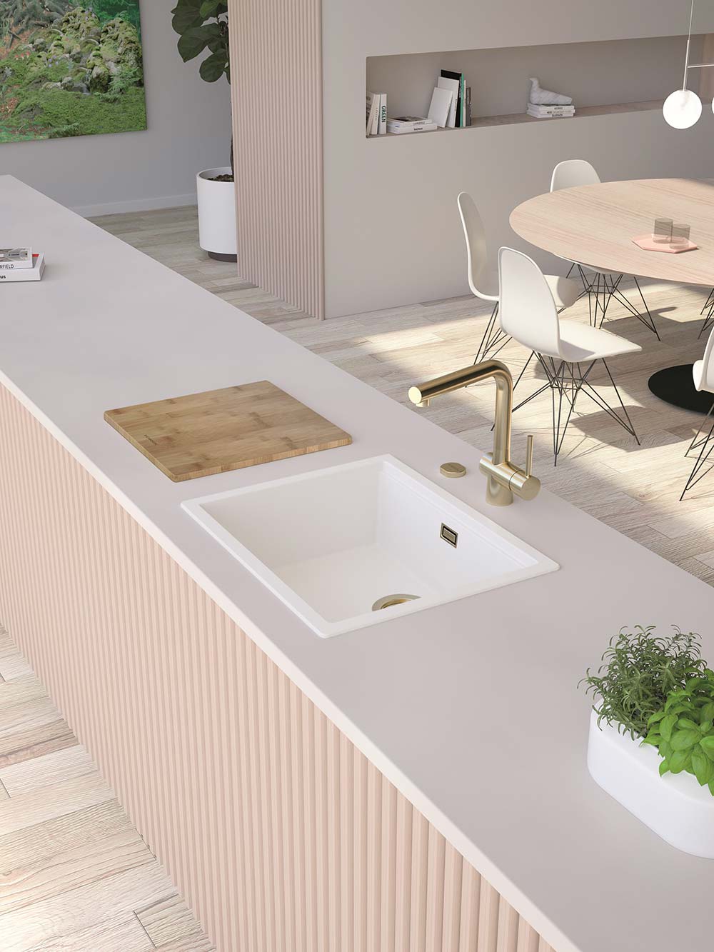 Korito prihaja iz prestižne linije Cristadur® in v tej beli barvi Day se bo lepo umestilo v vsako kuhinjo, lahko pa ga dobite tudi v štirih drugih barvah. Koritu lahko dodate še druge dodatke kot so izlivno prelivna garnitura v različnih barvnih obdelavah, dva različna silikonska odcejalnika, dva različna dizajnerska odcejalnika iz plemenitega jekla v večih barvah, nosilec s posodo in/ali cedilom, rezalna deska, gumb za avtomatsko odpiranje in zapiranje izliva, praktično kotno posodico ter več dozirnikov za milo.