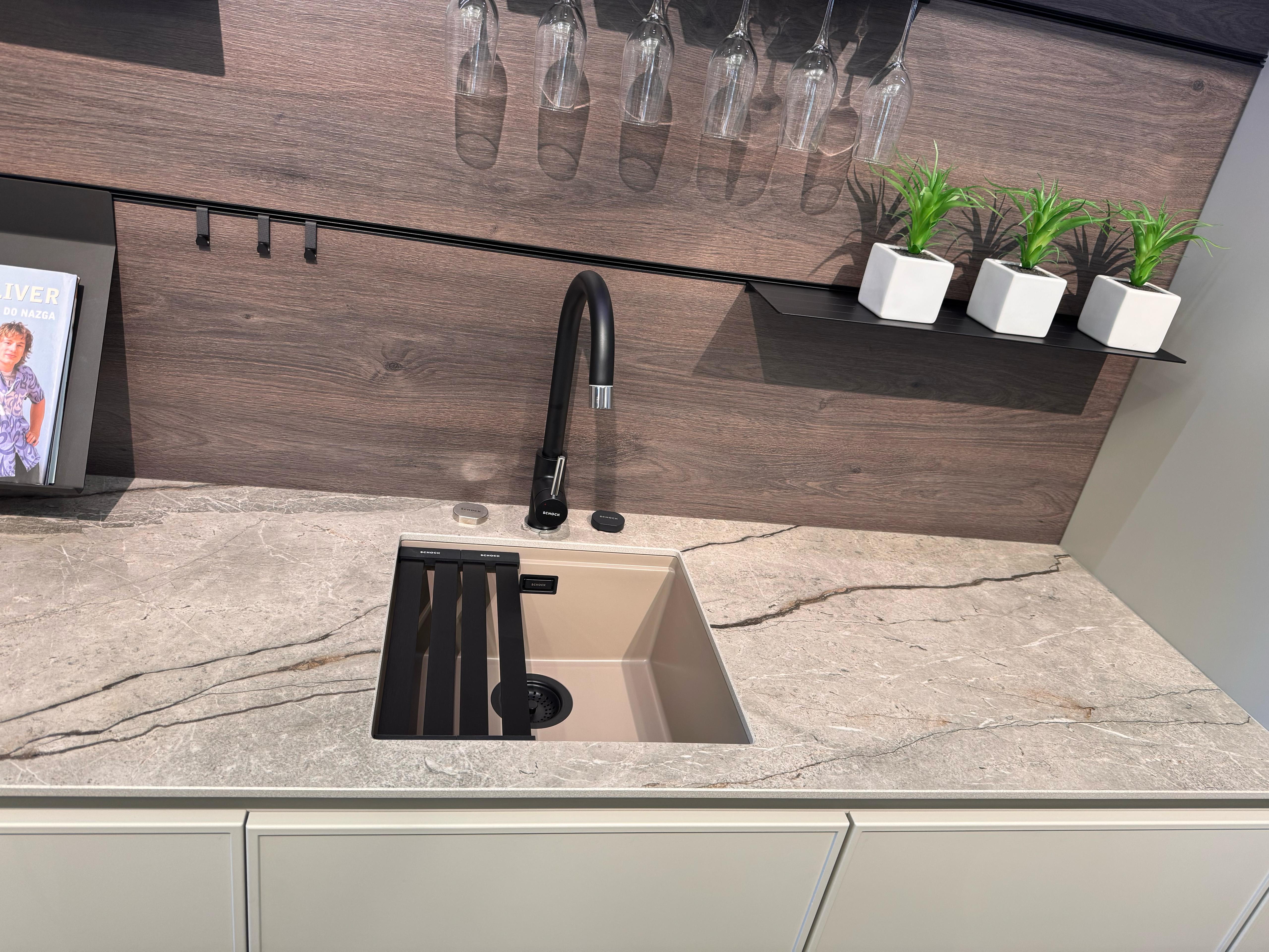 Korito prihaja iz prestižne linije Cristadur® in v tej taupe barvi Twilight se bo lepo umestilo v vsako kuhinjo, lahko pa ga dobite tudi v štirih drugih barvah. Koritu lahko dodate še druge dodatke kot so izlivno prelivna garnitura v različnih barvnih obdelavah, dva različna silikonska odcejalnika, dva različna dizajnerska odcejalnika iz plemenitega jekla v večih barvah, nosilec s posodo in/ali cedilom, rezalna deska, gumb za avtomatsko odpiranje in zapiranje izliva, praktično kotno posodico ter več dozirnikov za milo.