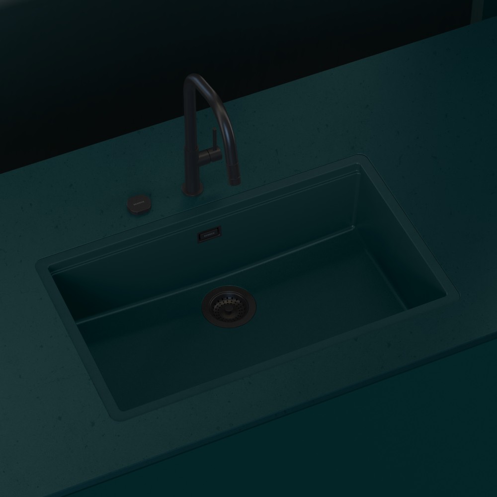 Korito prihaja iz prestižne linije Cristadur® in v tej temno zeleni barvi Ivy se bo lepo umestilo v vsako kuhinjo. Koritu lahko dodate še druge dodatke kot so izlivno prelivna garnitura v različnih barvnih obdelavah, dva različna silikonska odcejalnika, dva različna dizajnerska odcejalnika iz plemenitega jekla v večih barvah, nosilec s posodo in/ali cedilom, rezalna deska, gumb za avtomatsko odpiranje in zapiranje izliva, praktično kotno posodico ter več dozirnikov za milo.