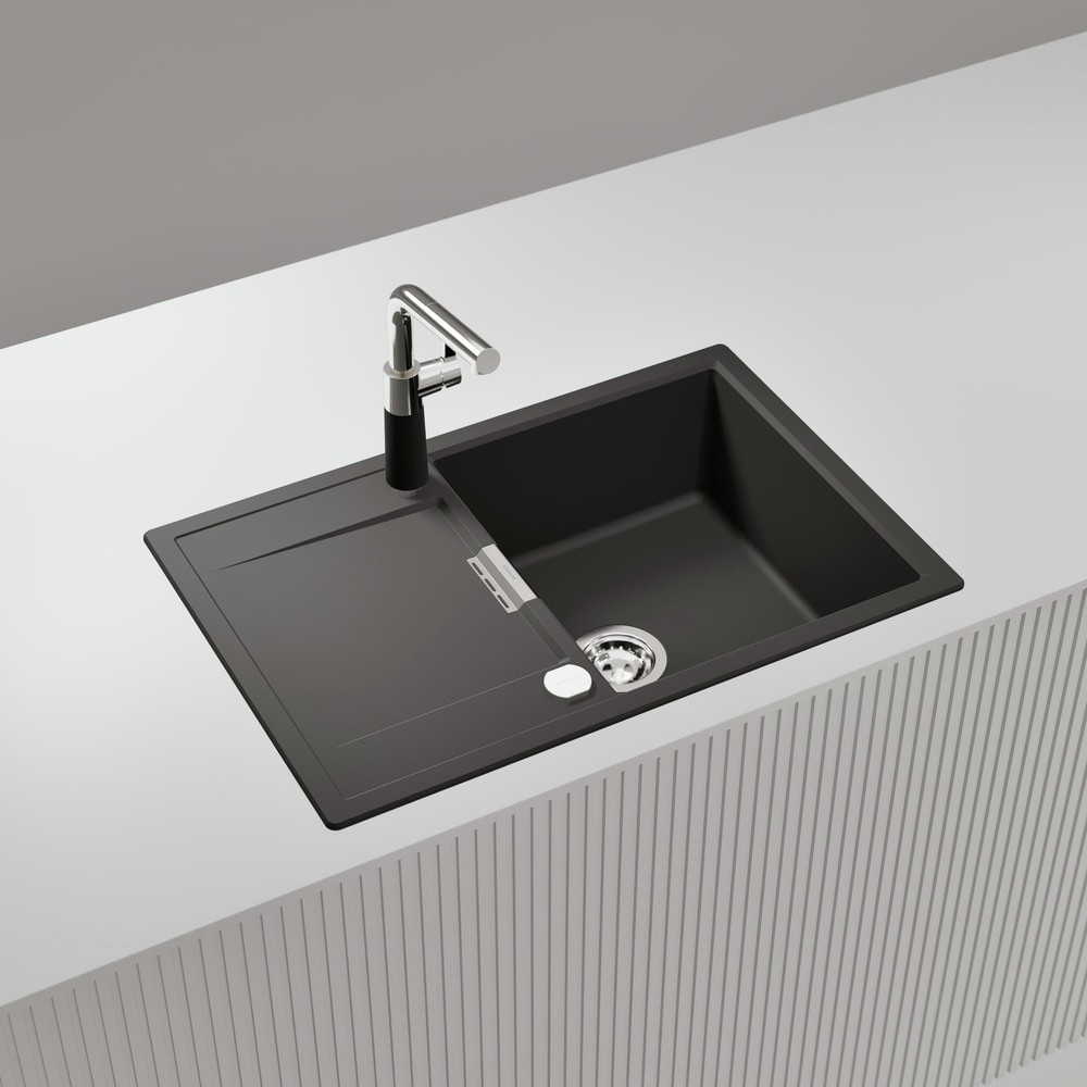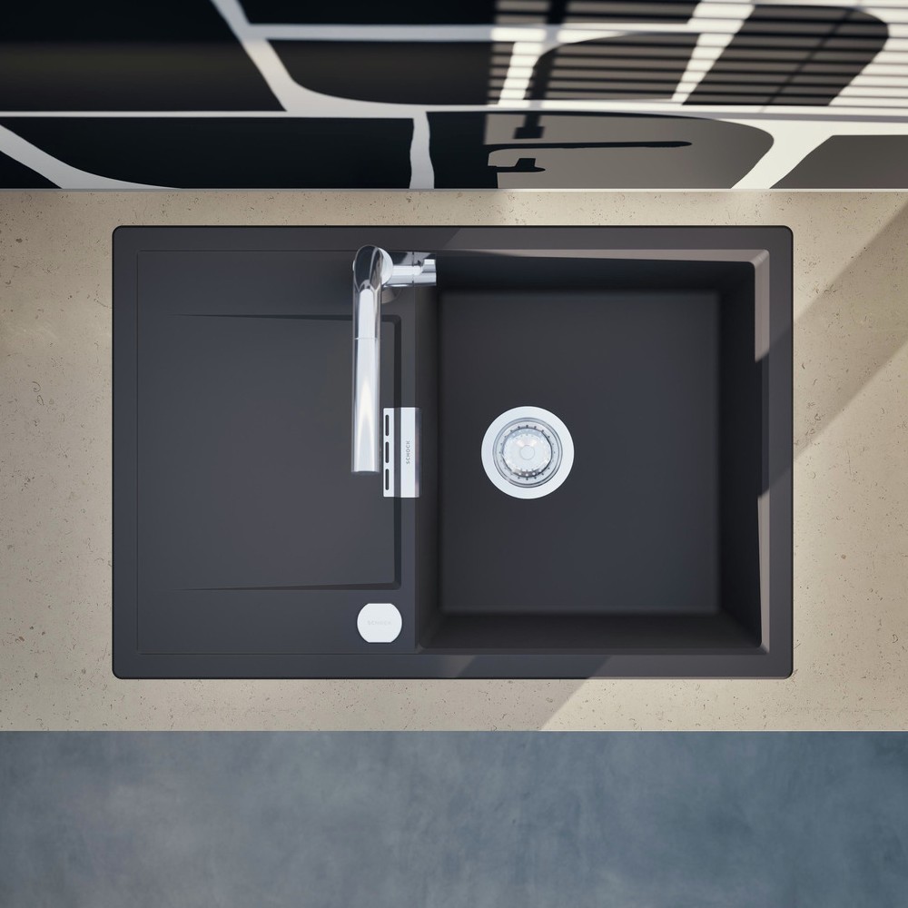 Pomivalno korito SCHOCK Mono D-100 je klasično kamnito korito z odcejalnikom ter veliko in globoko posodo. Je Schockovo najbolj priljubljeno korito in v tej temni barvi Dusk se s kuhinjsko armaturo SCHOCK Laios elegantno poda vsaki kuhinji.