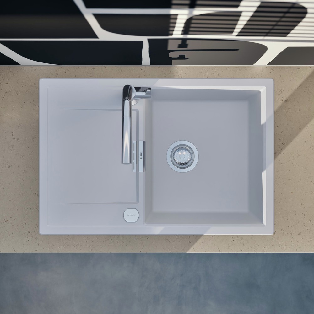 Pomivalno korito SCHOCK Mono D-100 je klasično kamnito korito z odcejalnikom ter veliko in globoko posodo. Je Schockovo najbolj priljubljeno korito in v tej beli barvi Polaris se s kuhinjsko armaturo SCHOCK Laios elegantno poda vsaki kuhinji.