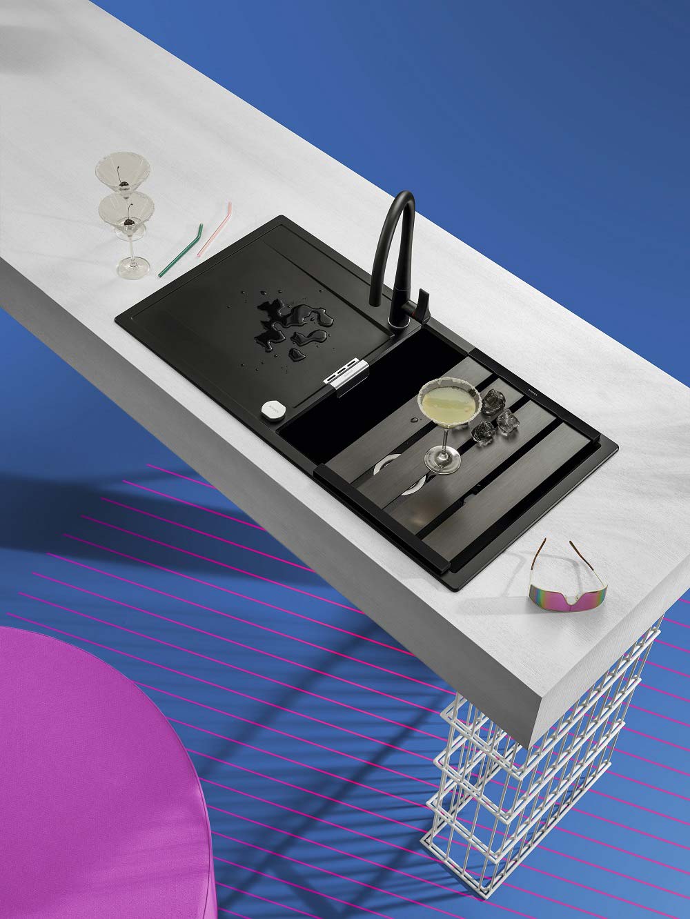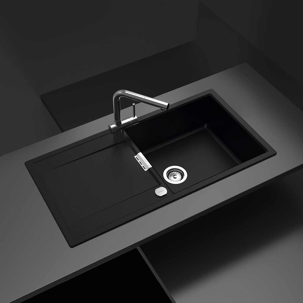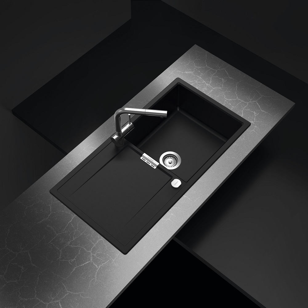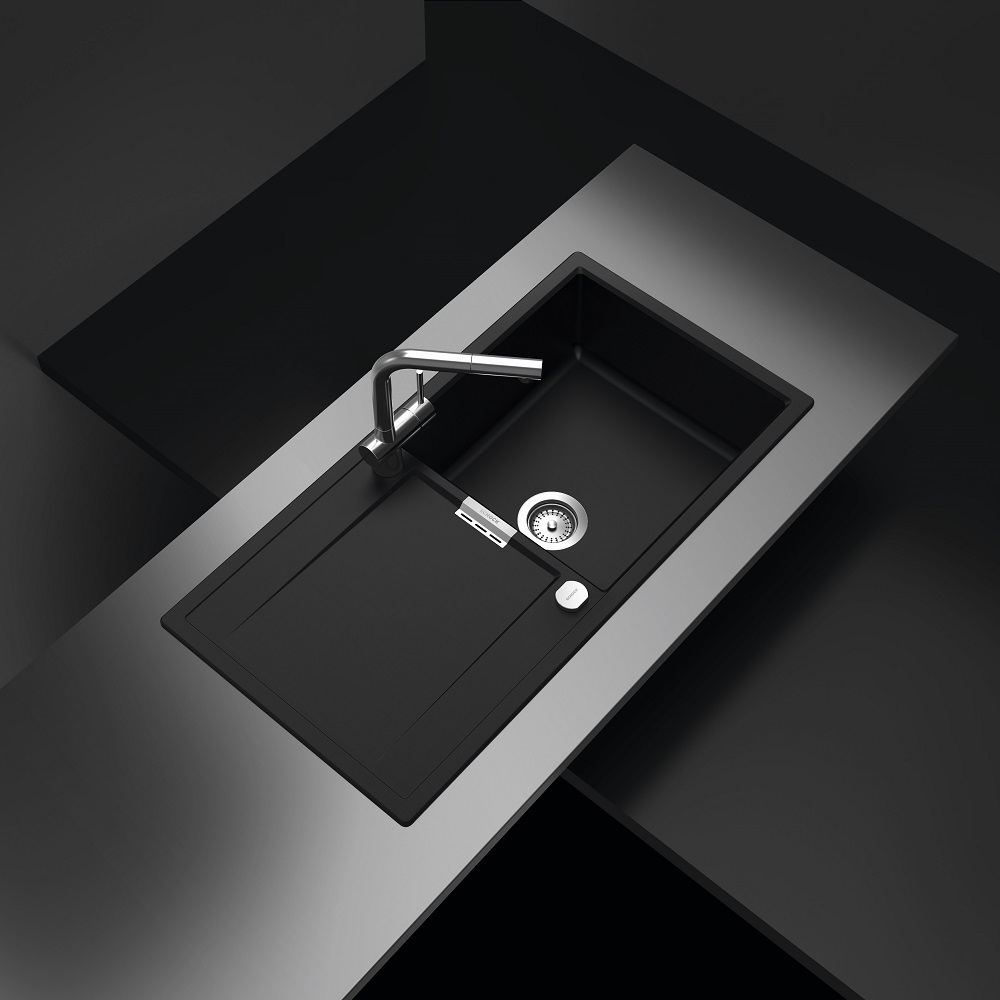 Narejeno je iz naravnega kamna, na voljo je v tej črni barvi Puro in še v 10-ih drugih barvah, v levi ali desni izvedbi. Da bo pomivalno korito izgledalo v stilu, ga lahko opremite s kuhinjsko armaturo SCHOCK Laios ter z LED razsvetljavo in različnimi dodatki kot so rezalna deska, izlivno prelivna garnitura v različnih barvnih obdelavah, dizajnerski odcejalniki iz plemenitega jekla, uporabne posodice in cedila, gumbi za avtomatsko odpiranje in zapiranje izliva, dekorativnim pokrovom izliva, grelnikom odcejalnika ter dozirniki za milo.
