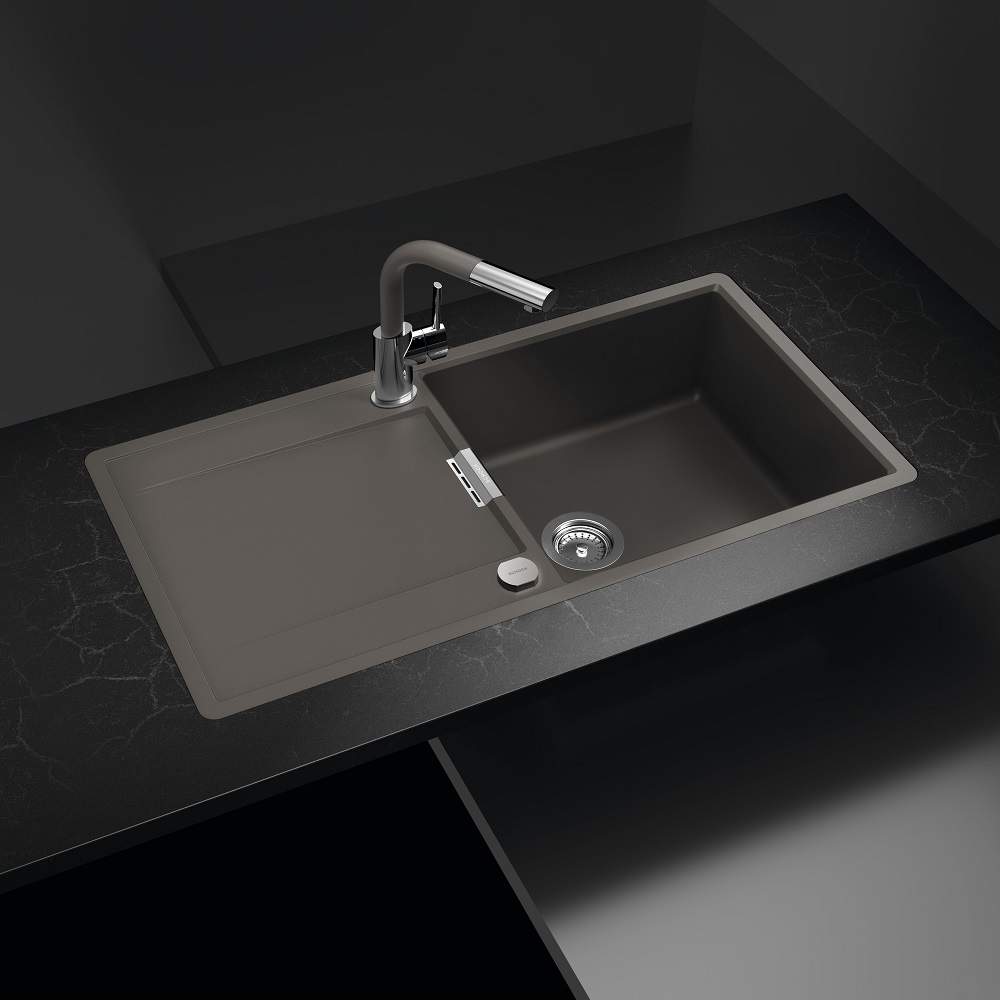 Narejeno je iz naravnega kamna, na voljo je v tej sivi barvi Silverstone in še v 10-ih drugih barvah, v levi ali desni izvedbi. Da bo pomivalno korito izgledalo v stilu, ga lahko opremite s kuhinjsko armaturo SCHOCK Laios ter z LED razsvetljavo in različnimi dodatki kot so rezalna deska, izlivno prelivna garnitura v različnih barvnih obdelavah, dizajnerski odcejalniki iz plemenitega jekla, uporabne posodice in cedila, gumbi za avtomatsko odpiranje in zapiranje izliva, dekorativnim pokrovom izliva, grelnikom odcejalnika ter dozirniki za milo.
