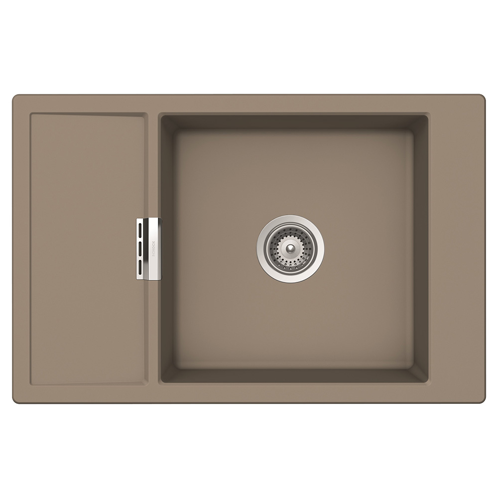 Pomivalno korito SCHOCK Mono D-100XS je klasično kamnito korito z relativno majhnim odcejalnikom, a veliko in globoko posodo. V taupe barvi Twilight se v kombinaciji s kuhinjsko armaturo SCHOCK Dion elegantno poda vsaki kuhinji, za svilnat otip in odpornost na udarce ter praske pa poskrbi kakovosten material prestižne linije Cristadur®. Dobavljivo je še v 10-ih drugih barvah.