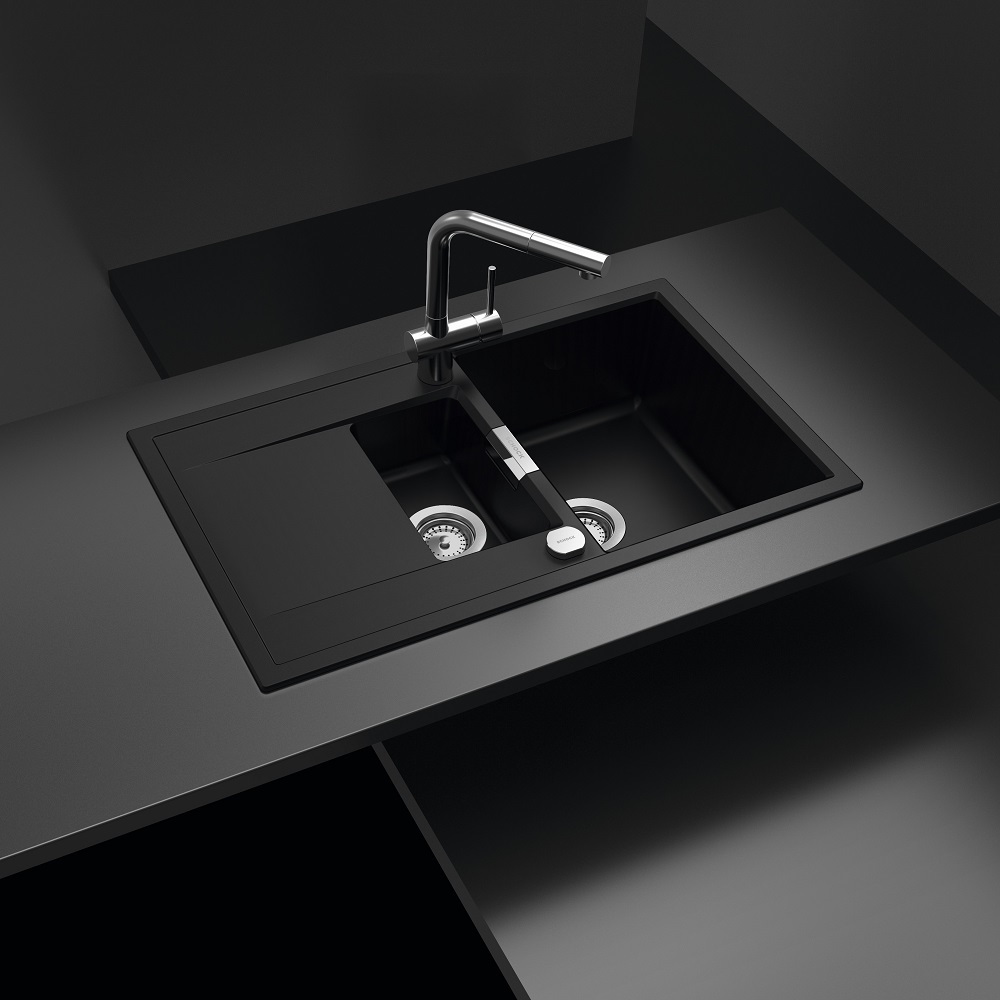 Pomivalno korito SCHOCK Mono D-150 je klasično korito iz naravnega kamna. Korito ima odcejalnik ter eno večjo in eno manjšo (polovično) posodo. Spada v prestižno linijo Cristadur® in v črni barvi Puro čudovito sovpada s kuhinjsko armaturo SCHOCK Laios. Elegantno se poda vsaki kuhinji, ne glede na to, kako ga obrnete.