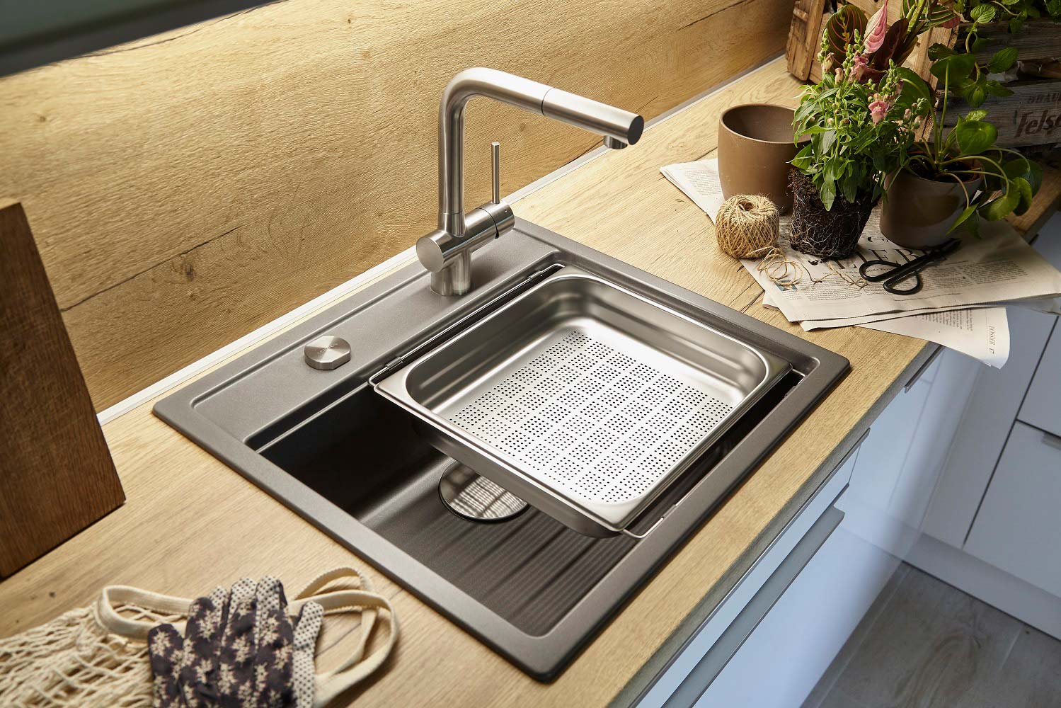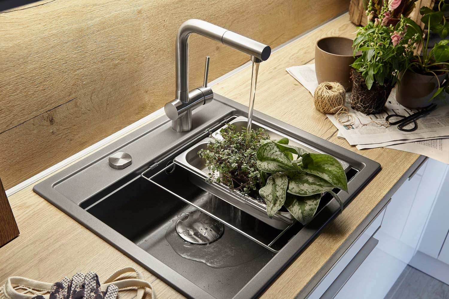 Za še večji »wow« efekt pa ga lahko dodatno opremite še z LED razsvetljavo, izlivno prelivno garnituro v različnih barvnih obdelavah, raznimi cedili in posodami ter nosilci, rezalno desko, silikonskimi odcejalniki, praktično kotno posodico, gumbom za avtomatsko odpiranje/zapiranje izliva, dekorativnim pokrovom izliva ter različnimi dozirniki za milo v večih barvah.