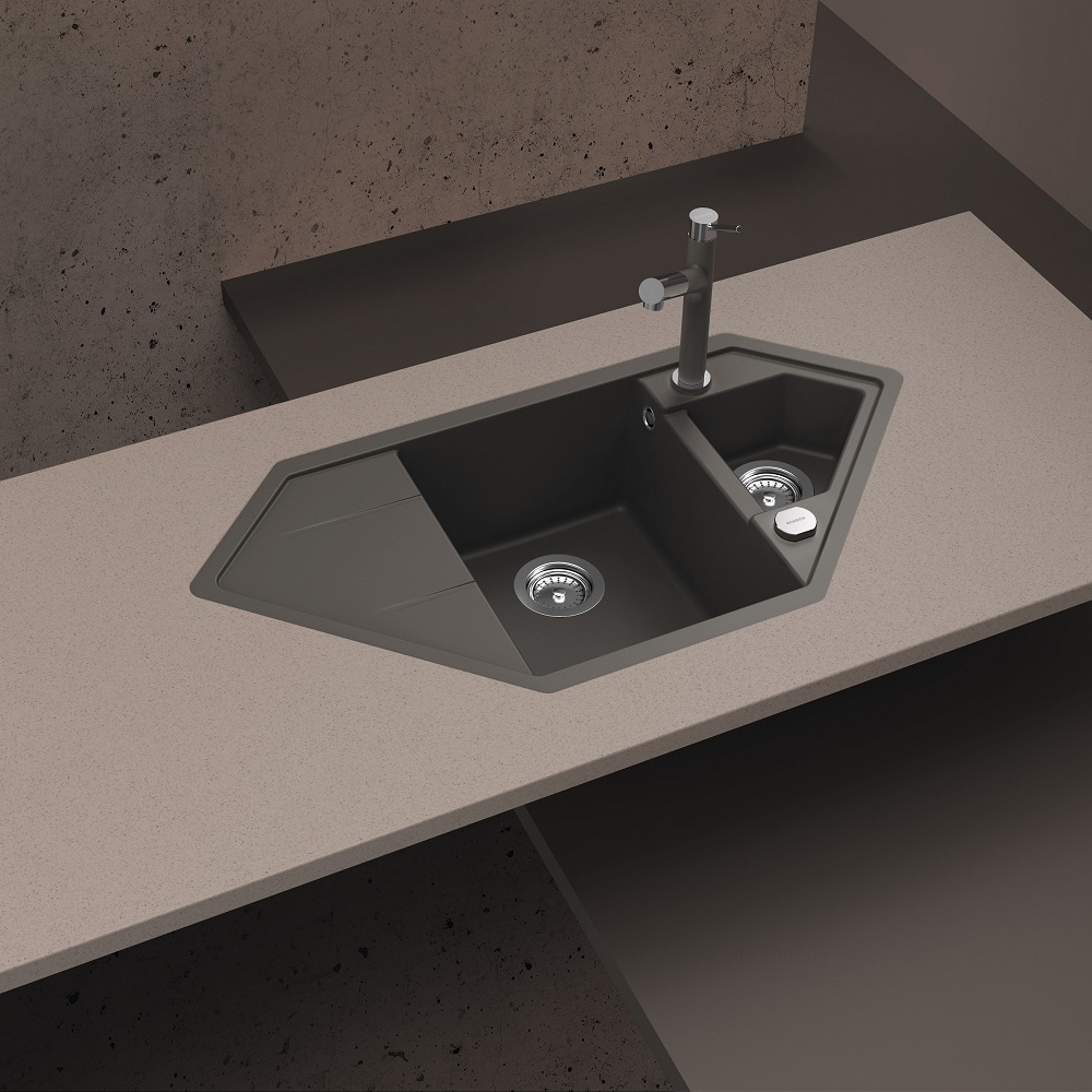 Pomivalno korito SCHOCK Signus C-150 je kotno korito z dvema posodama (eno večjo in globljo ter drugo manjšo in plitkejšo). Ima tudi majhen odcejalnik. Dobavljivo je v tej sivi barvi Silverstone, prav tako pa še v štirih drugih barvah prestižne linije Cristadur®. Signus je brezčasno in elegantno pomivalno korito, kateremu lepo pristajata kuhinjski armaturi SCHOCK Laios ali Epos.