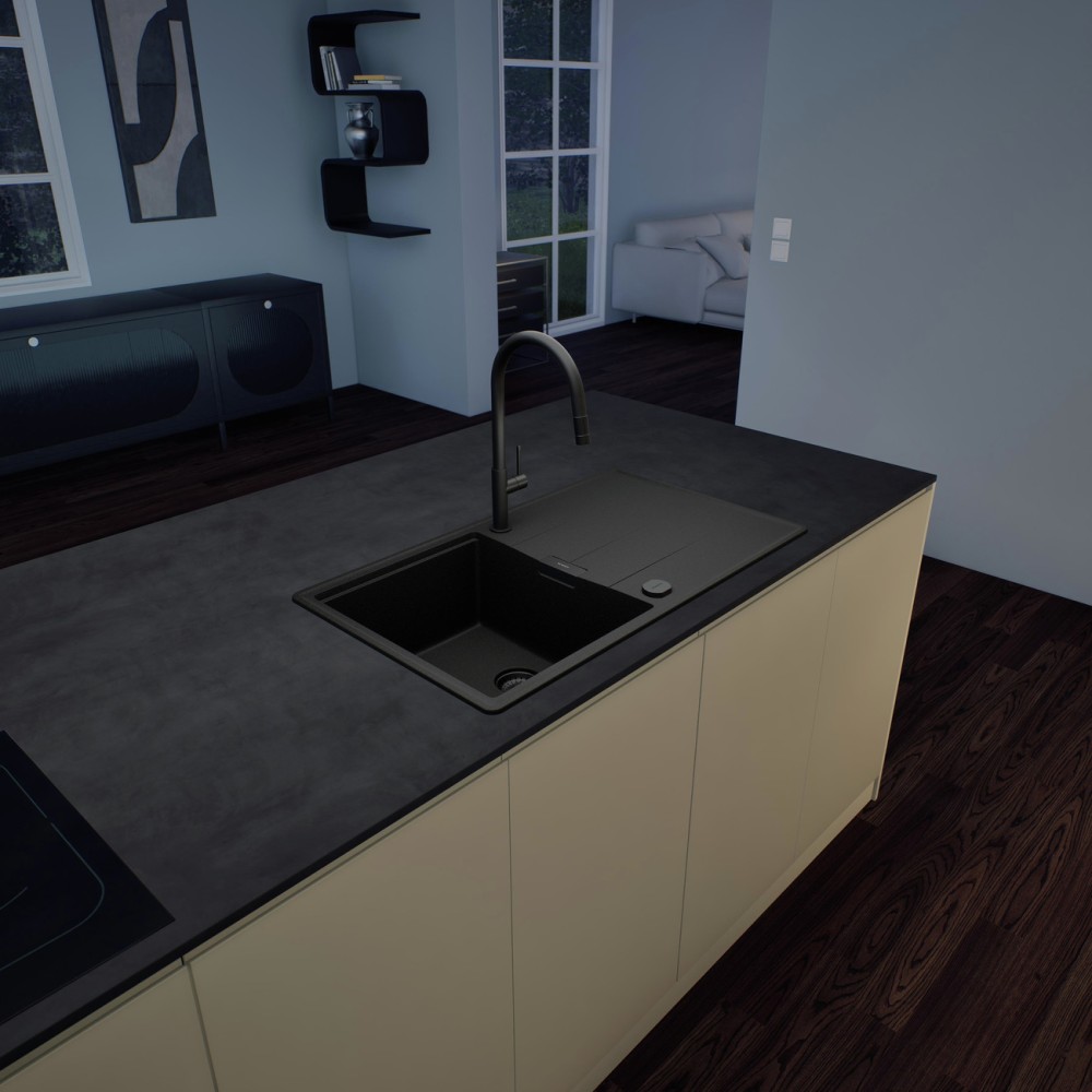 Korito prihaja iz prestižne linije Cristadur® in v tej črni barvi Magma se bo lepo umestilo v vsako kuhinjo. Koritu lahko dodate dodatke kot so LED luči, izlivno prelivna garnitura v različnih barvnih obdelavah, dizajnerski odcejalnik iz plemenitega jekla v različnih barvah, večnamenski nosilec, razne posodice ali cedila, rezalne deske, gumb za avtomatsko odpiranje in zapiranje izliva ter dozirnik za milo.