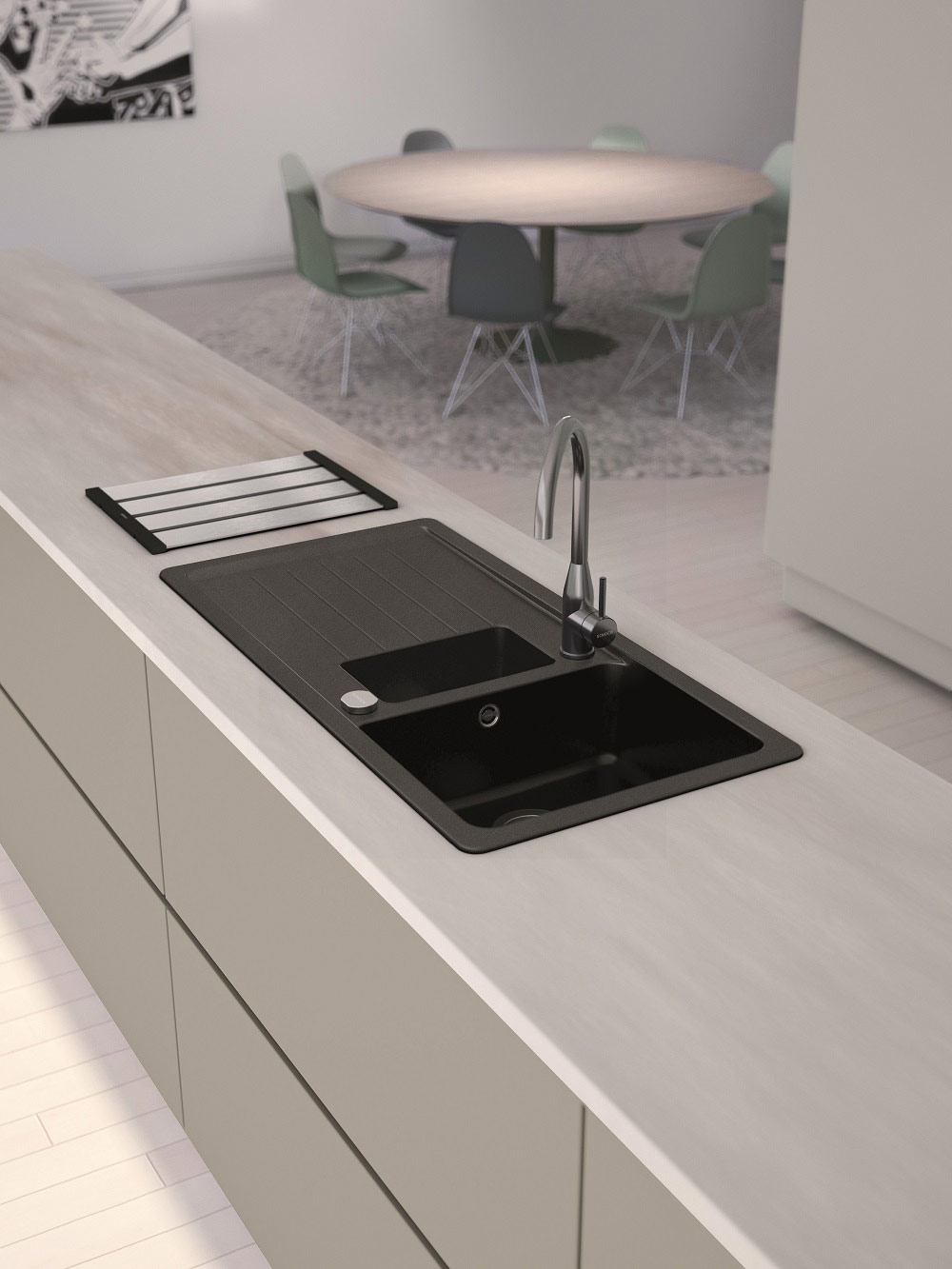 V kombinaciji s kuhinjsko armaturo SCHOCK Gota se bo korito lepo prilegalo vsaki kuhinji, dodatno pa ga lahko opremite še z različnimi dodatki kot so izlivno prelivna garnitura v različnih barvnih obdelavah, rezalna deska iz umetnih vlaken, dizajnerski odcejalnik iz plemenitega jekla, praktična kotna posodica ter dozirnik za milo. Za vse tipe pomivalnih korito Schock pa nudimo tudi ustrezna čistila ter druga sredstva za nego.