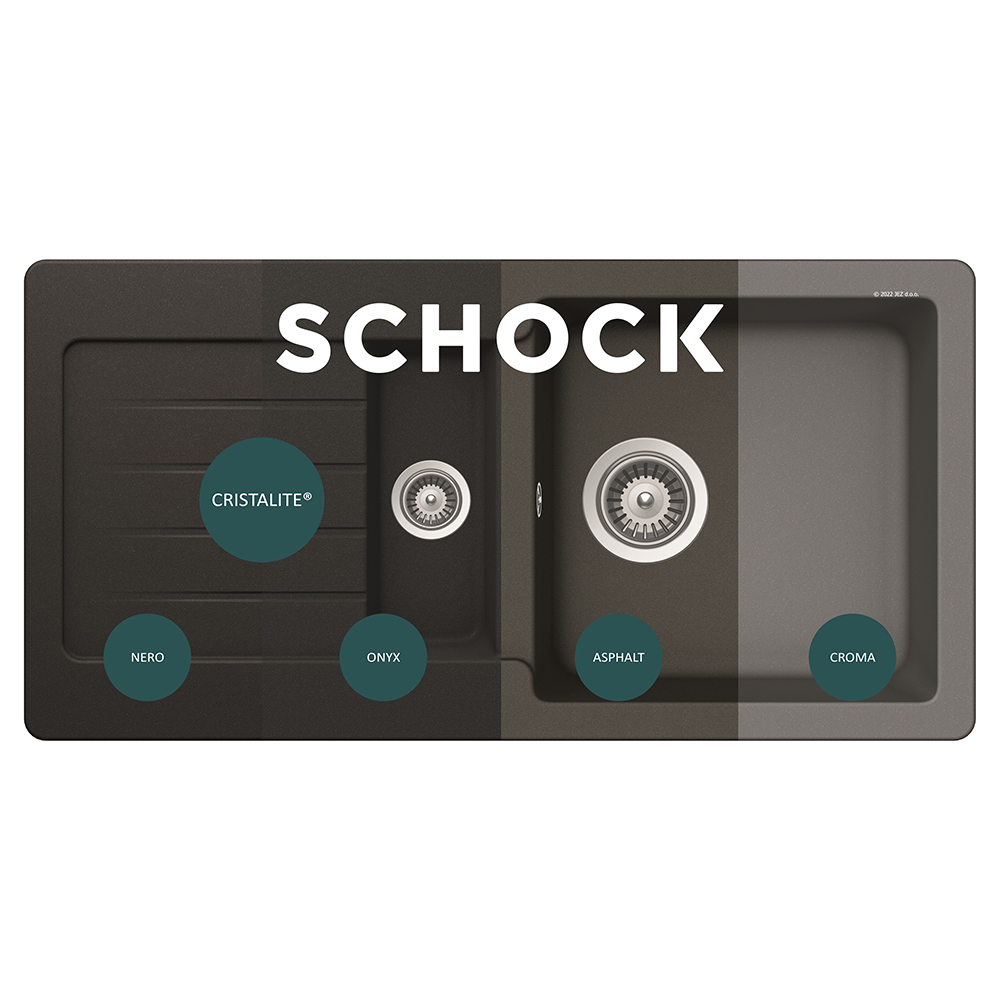 Pomivalno korito SCHOCK Typos D-150S je srednje veliko sodobno korito z eno večjo in eno manjšo posodo. Dobavljivo je v tej črni barvi Onyx, prav tako pa še v treh drugih barvah linije Cristalite®. Koritu se lepo poda kuhinjska armatura SCHOCK SC-510, ki jo prav tako lahko dobite v barvah linije Cristalite®.