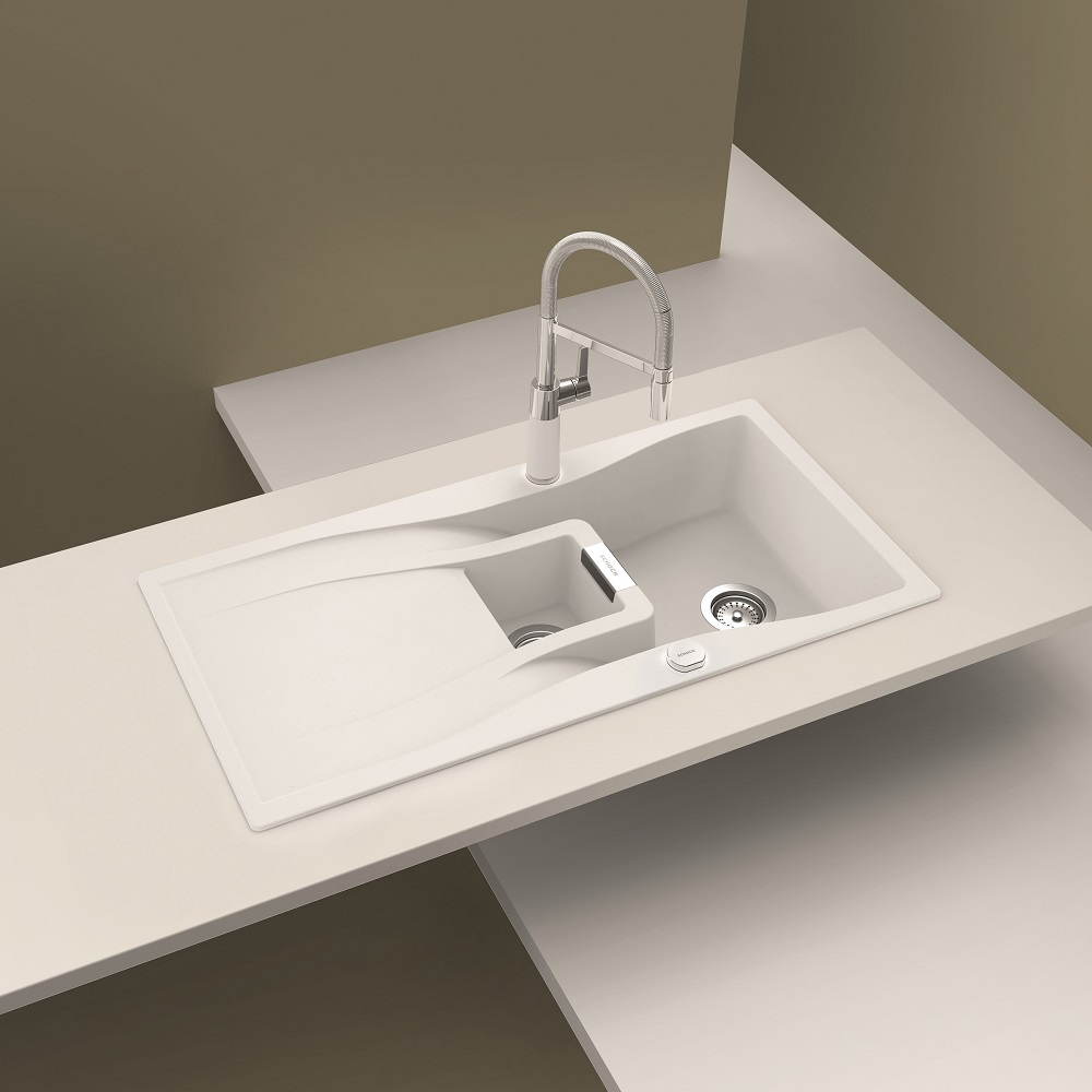 Kamnito pomivalno korito Schock Waterfall D-150 je izvrstna izbira za kuhinje, ki potrebujejo eleganten in praktičen dodatek. S svojo edinstveno obliko in barvo bo zagotovo osvežilo videz vaše kuhinje. Zraven te bele barve Polaris je korito dobavljivo še v 6-ih drugih barvah. Korito je izdelano iz visokokakovostnega materiala Cristadur®, ki zagotavlja trpežnost in odpornost na različne poškodbe.