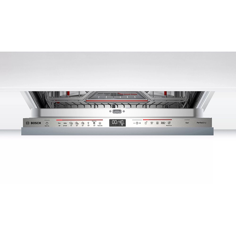 Popolnoma vgradni pomivalni stroj Bosch SMV6ZCX42E energijskega razreda C za odlične rezultate pranja s pomočjo naravnega minerala zeolita. ExtraSpace dodatna košara in VarioDrawer predal zagotavljata dodatni prostor in enostavno polnjenje stroja. Za neslišno pomivanje skrbi program Silence, ki zniža raven glasnosti delovanja.