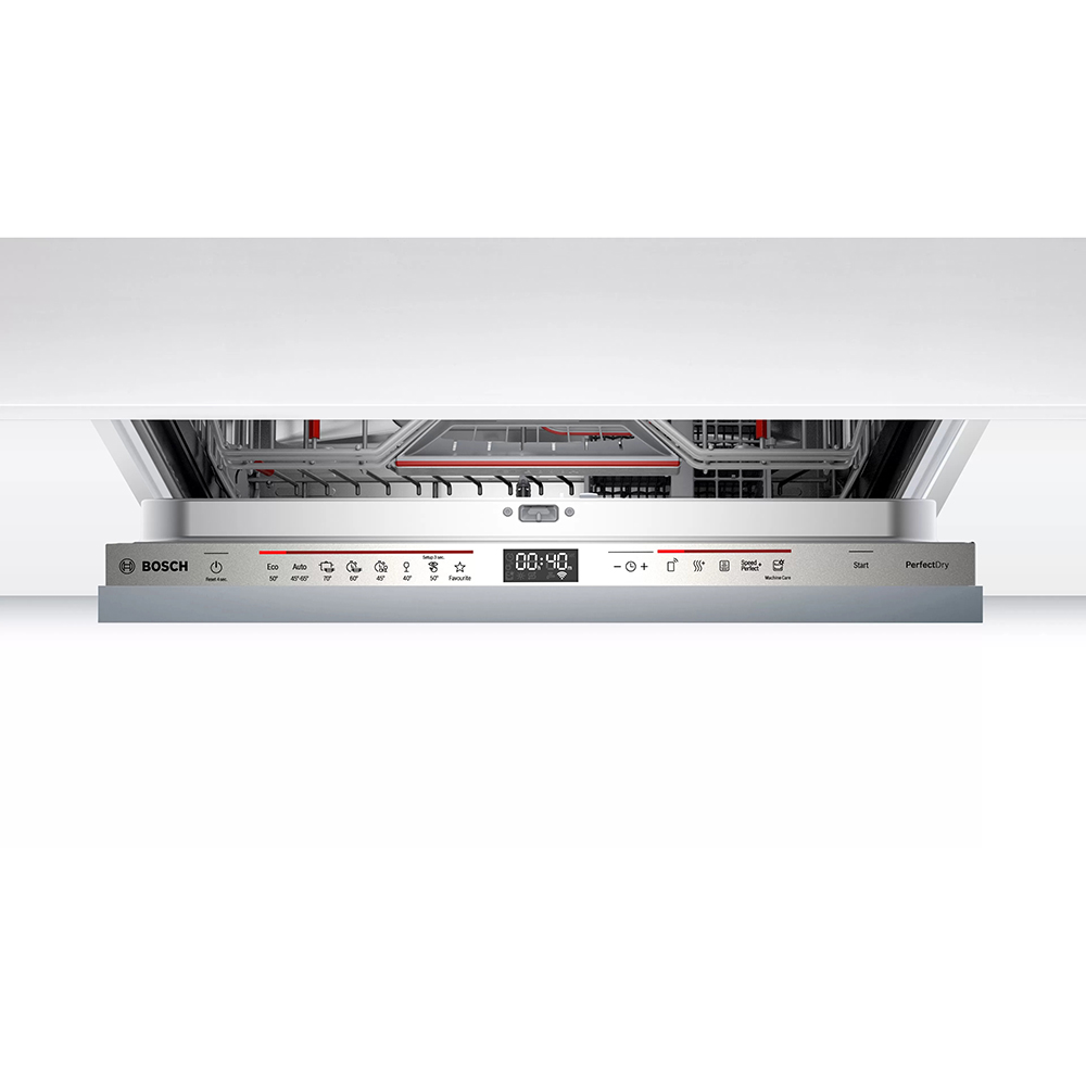 Popolnoma vgradni pomivalni stroj Bosch SMV6ZDX49E energijskega razreda C vas bo navdušil z njegovo prilagodljivostjo. Povezava preko aplikacije Home Connect omogoča štetje tablet, da jih nikoli ne zmanjka. Tihi program Silence, zniža glasnost pomivalnega stroja na najnižjo za uživanje v tihem prostoru.