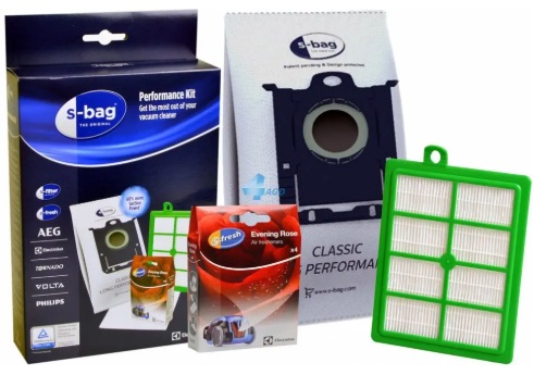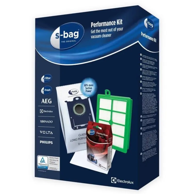 Komplet za sesalnike vsebuje vse kar potrebujete za učinkovito delovanje vašega sesalnika. V kompletu so 4 vrečke za prah S-BAG CLASSIC Long Performance (E201S), dišava za sesalnik Evening Rose ESRO (4 kosi), izhodni filter Hygiene Filter™ (EFH12) in motorni filter (EF54).