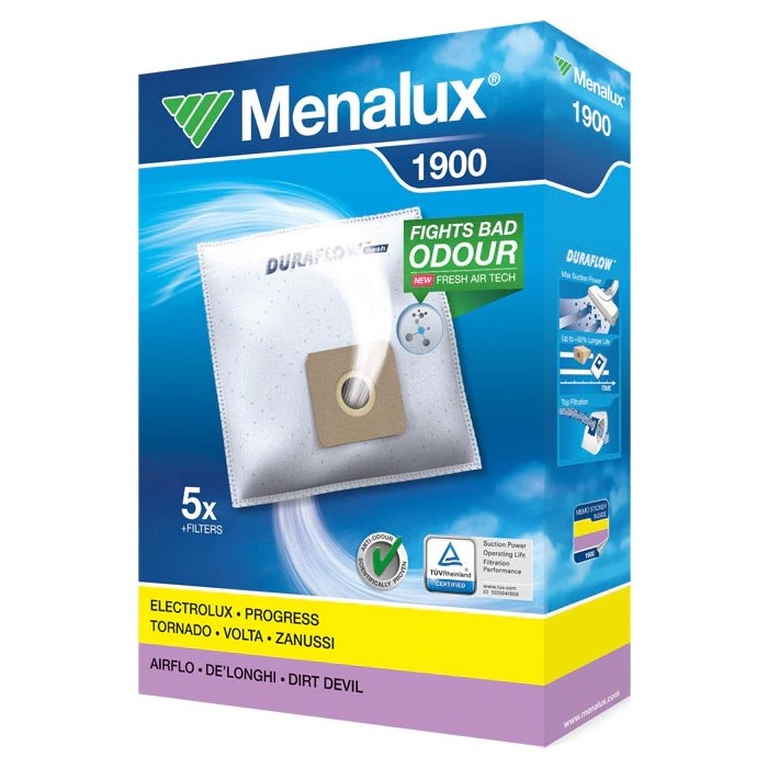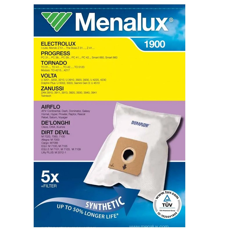 Visokokakovostne sintetične Menalux vrečke za sesalec so zasnovane tako, da ustrezajo vašemu sesalniku in ohranjajo njegovo najboljšo učinkovitost. V paketu je 5 vrečk in filter.