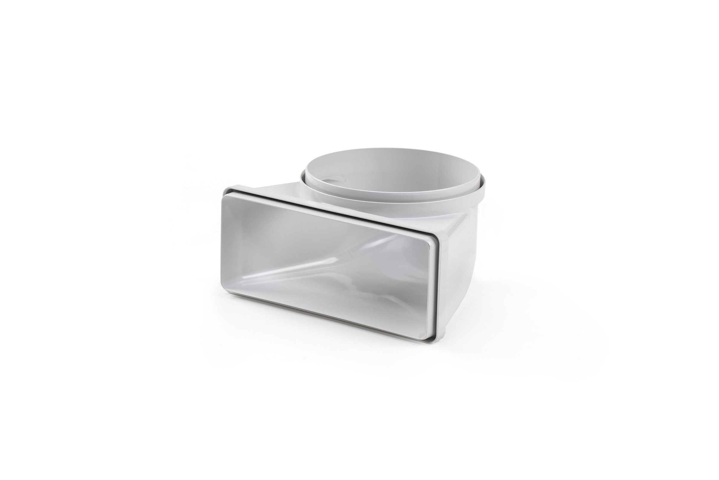 Koleno je namenjeno neposredni priključitvi pravokotnega in okroglega zračnega kanala ustreznih dimenzij pod kotom 90°. Koleno je izdelano iz visokokakovostne plastike in omogoča neoviran pretok zraka.