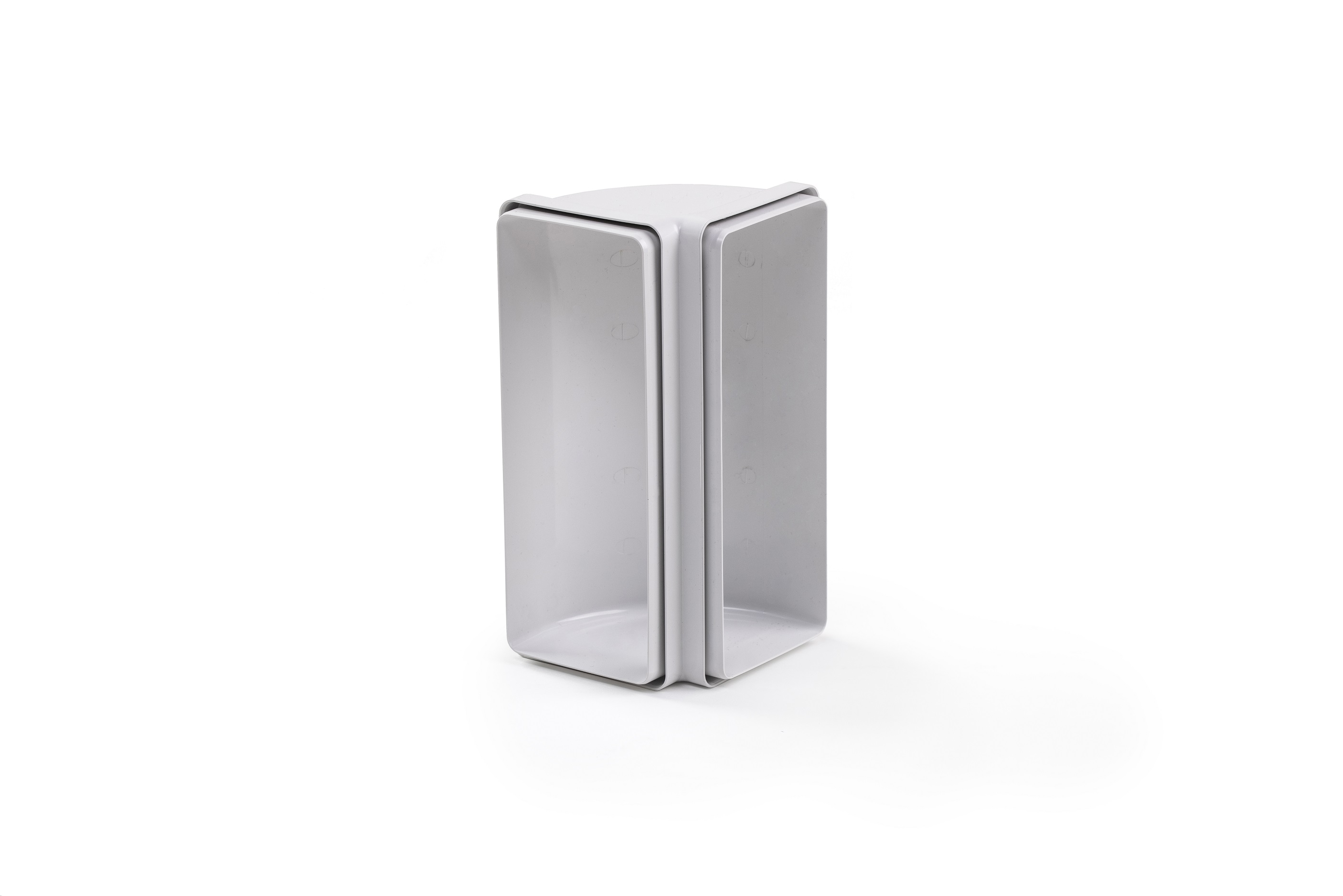 Koleno je namenjeno neposredni priključitvi pravokotnih zračnih kanalov enakih dimenzij pod kotom 90°. Koleno je izdelano iz visokokakovostne plastike in omogoča neoviran pretok zraka.