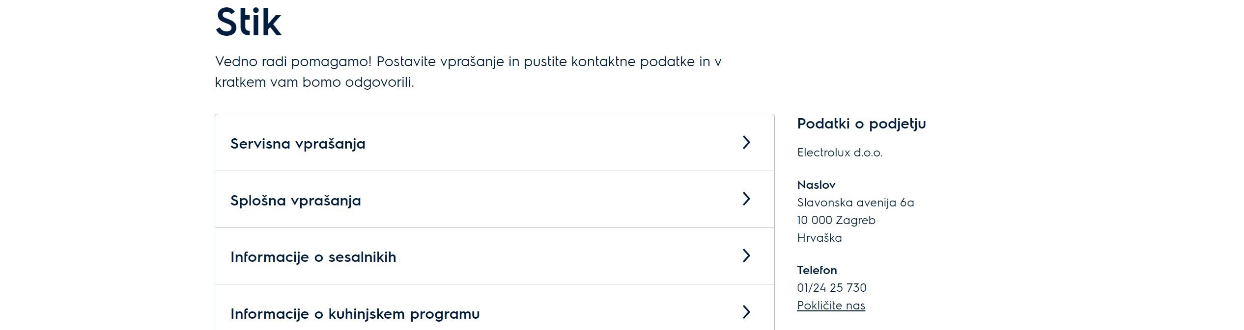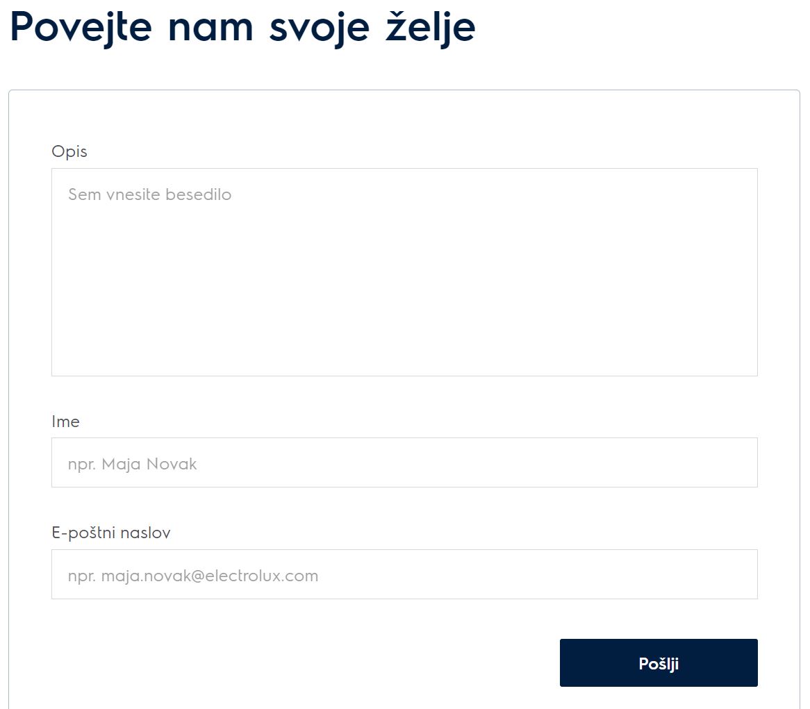 Postopek oddaje spletnega zahtevka za servis vašega Electrolux aparata: