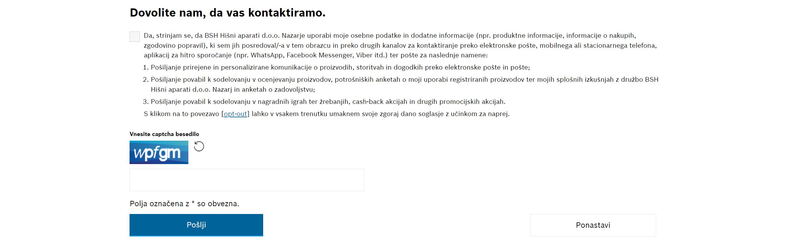 5. Za konec pa še samo obkljukate, da se strinjate s tem, da vas serviser kontaktira, vnesete captcha besedilo ter kliknete na gumb "Pošlji".